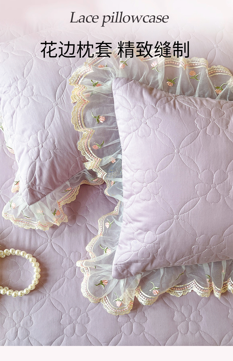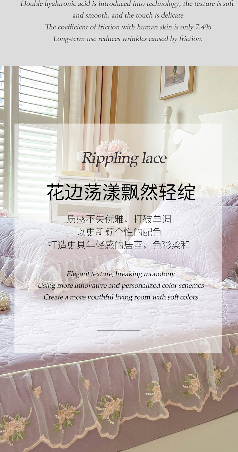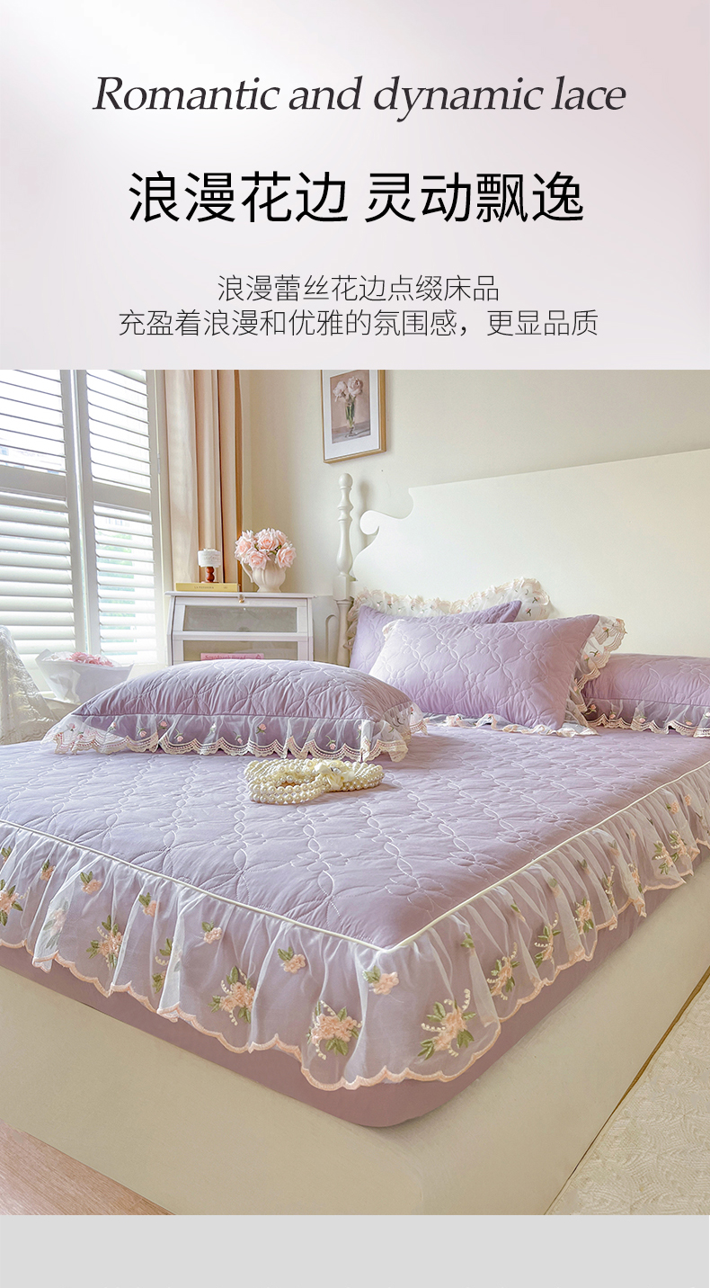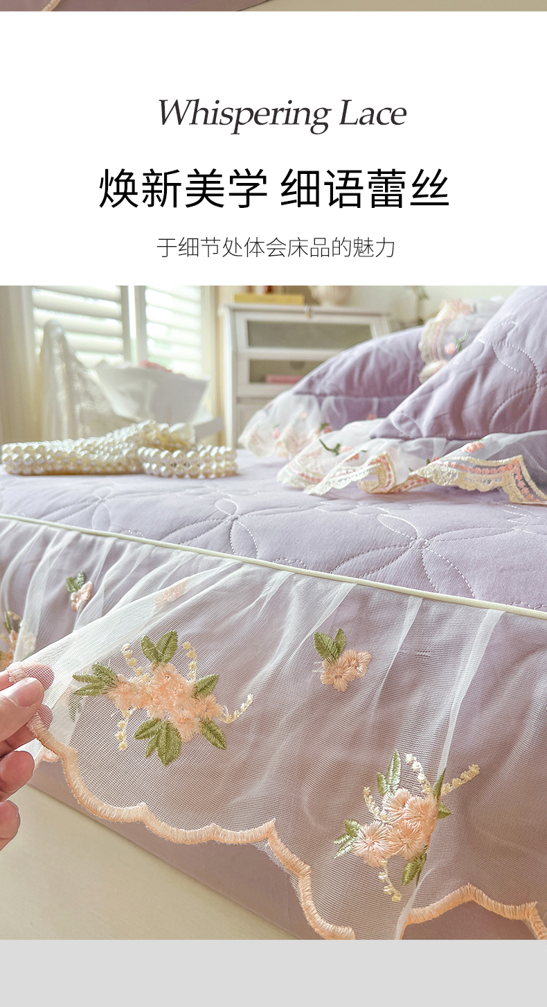• 91家纺网 家纺一手货源 找家纺 网红馆(ck家纺) 2026新款全棉蕾丝花边床裙款床笠晨暮花间系列 浅紫