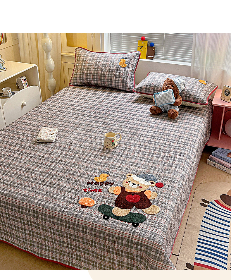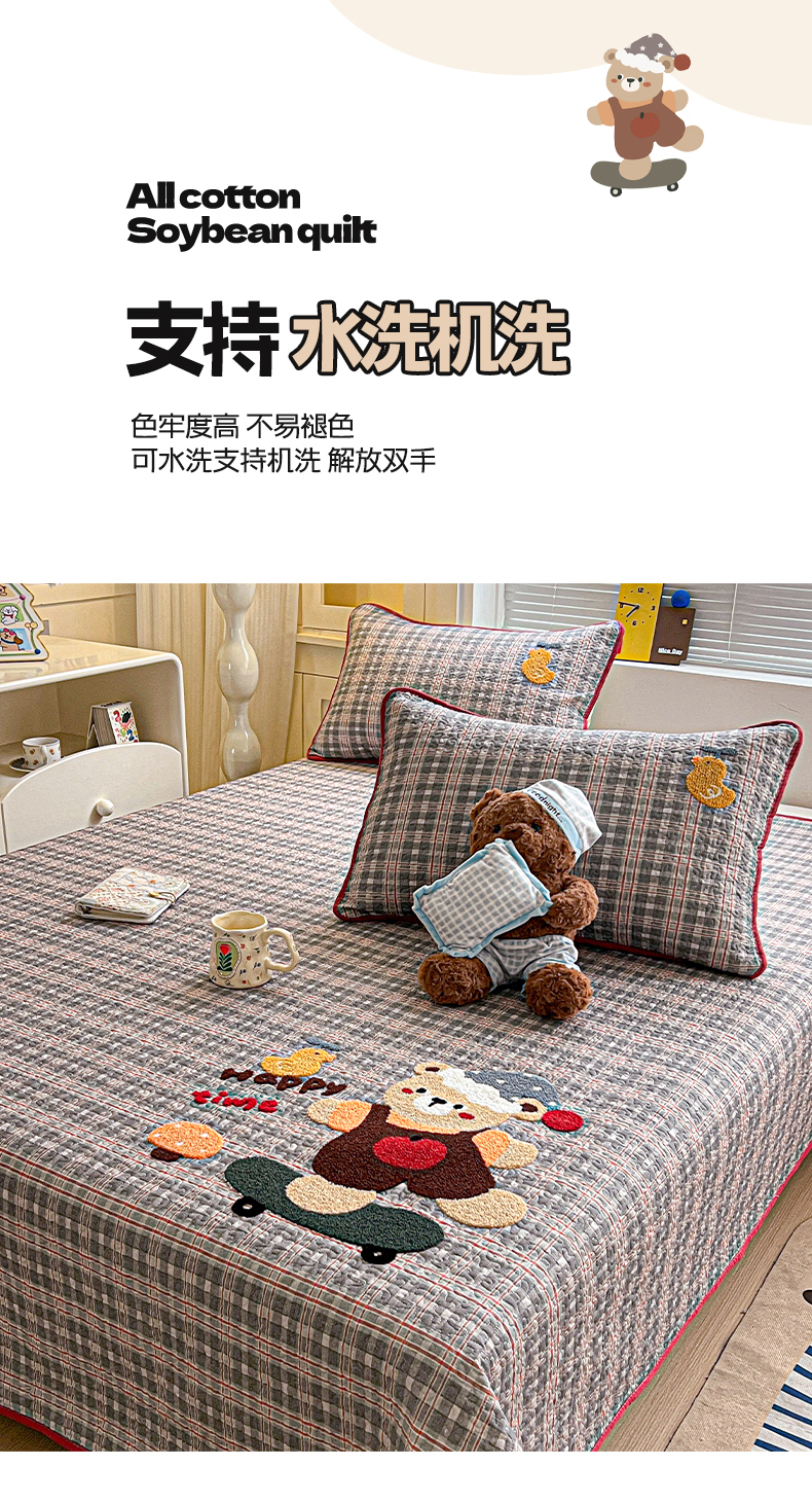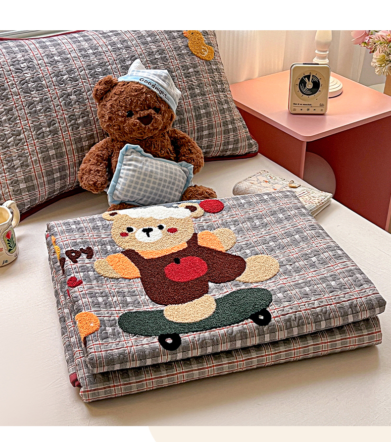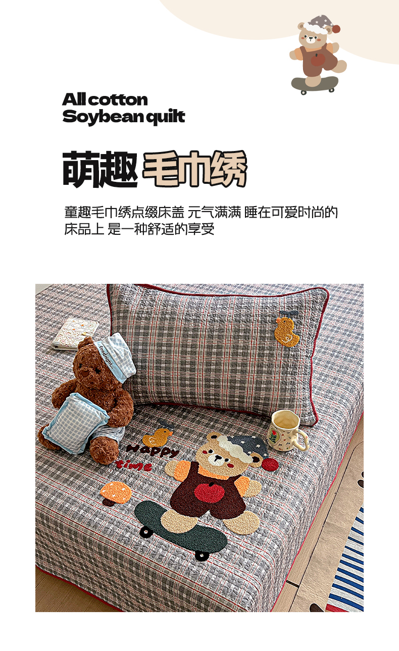 (总)鑫喜莱家纺 2026新款全棉纯棉13372床盖款原创毛巾绣四件套,滑板小熊仔,面包小狗,线团小黑猫,星星人,酷酷的小熊,南瓜小兔,胖熊的星星,苹果小狗
