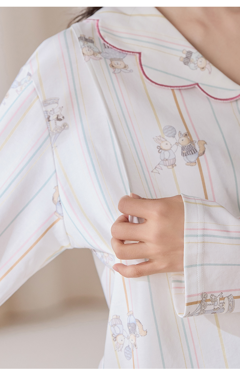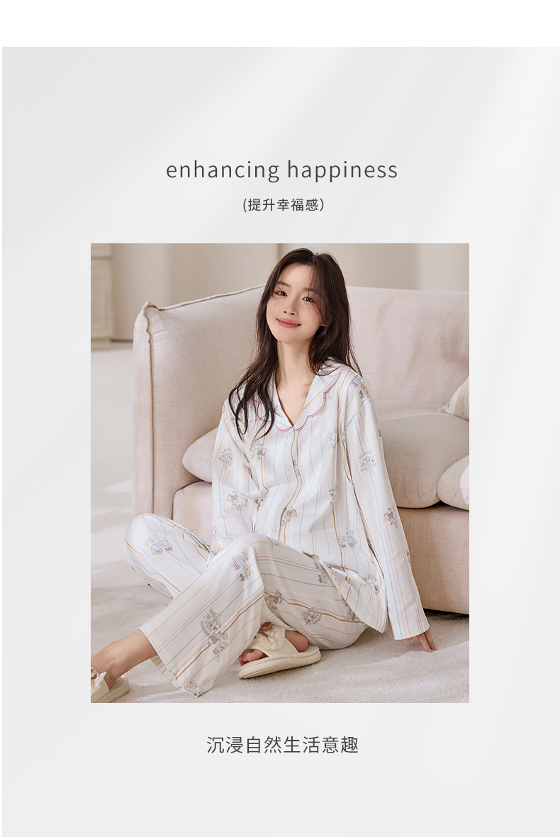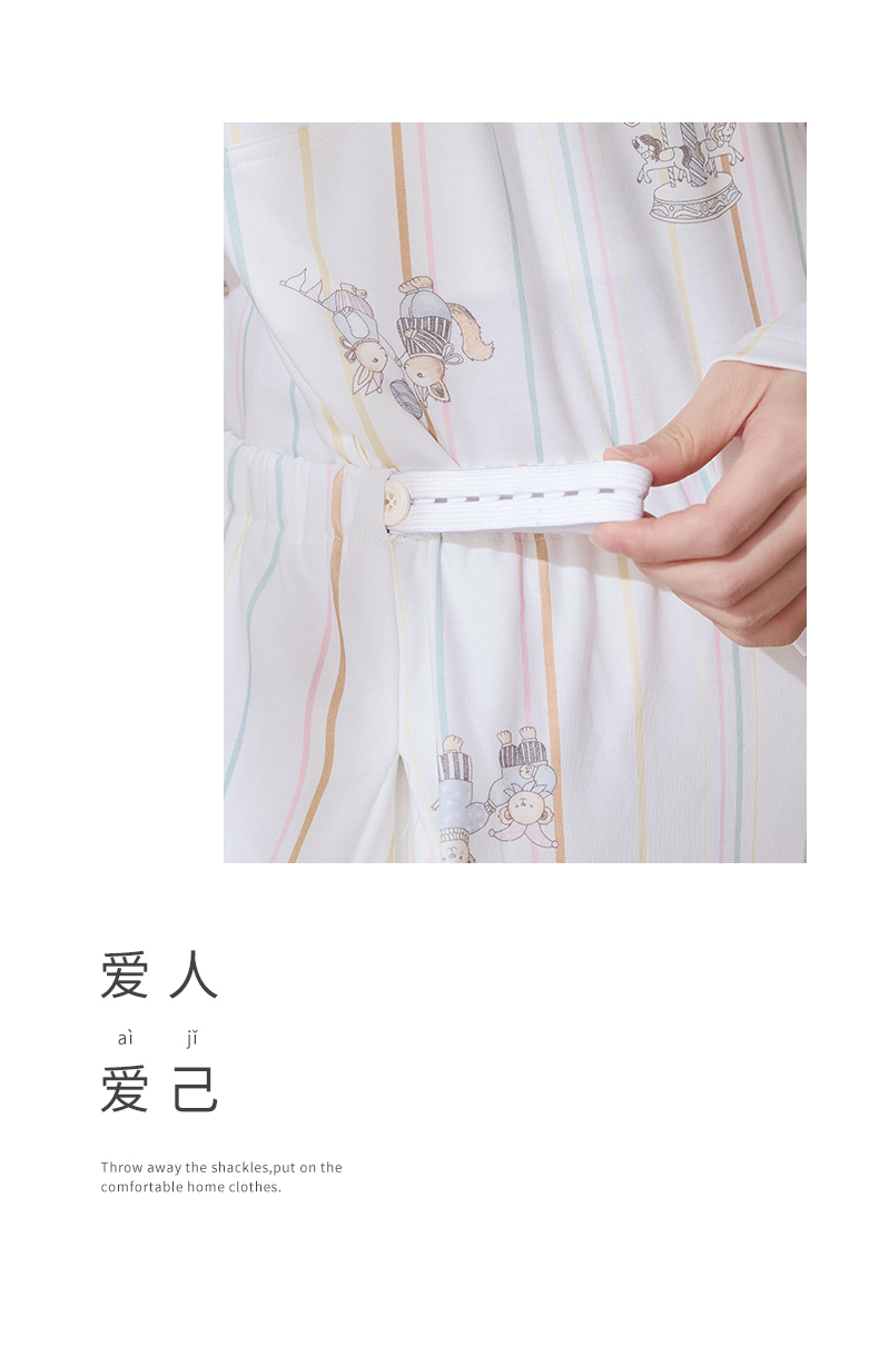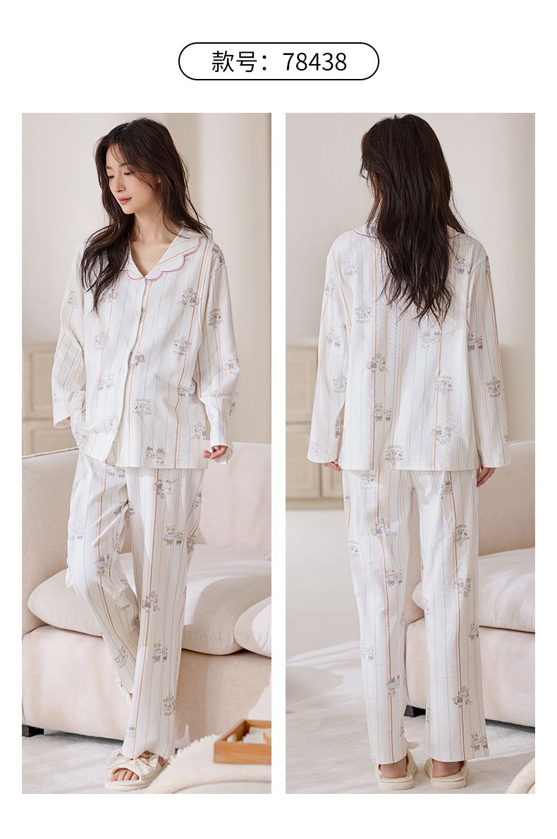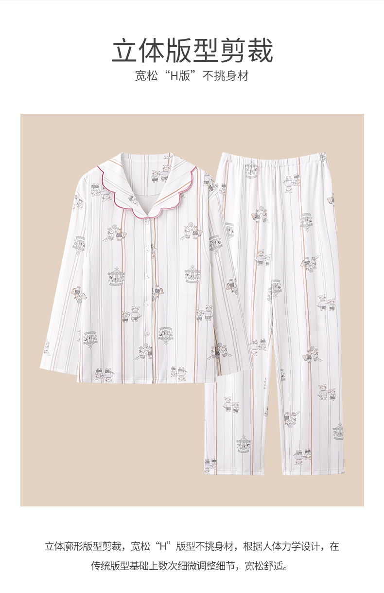 商品名称:洛兰沙家居馆 2026春秋季新款小清新针织全棉纯棉100%翻领开衫双长孕妇月子服睡衣女 翻领套装1