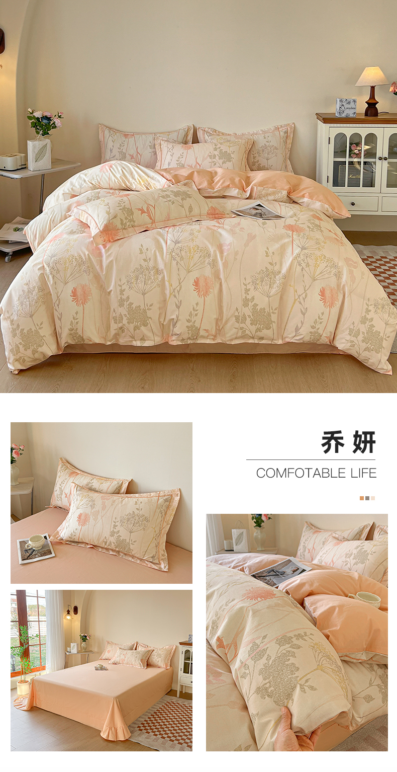 当前位置: 91家纺网 > 商品网购 > 床品套件 > 四件套 > 全棉普通四件套 > 帛美家纺 2026新款小清新全棉纯棉印花四件套 晚秋