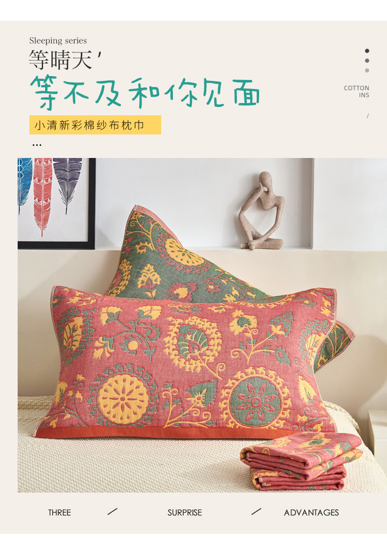 (总)朴尔家纺-毛巾被2025新款彩棉国潮风全棉六层纱布枕巾,彩色星光-枕巾,繁花朵朵-枕巾,芳华-枕巾,花间物语-橘枕巾,花间物语-蓝枕巾,花田印象-枕巾,柠香-灰枕巾,柠香-咖枕巾,似锦-枕巾