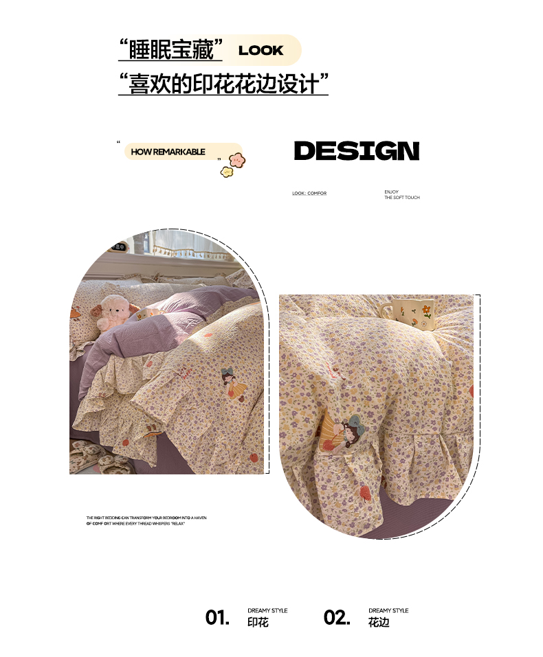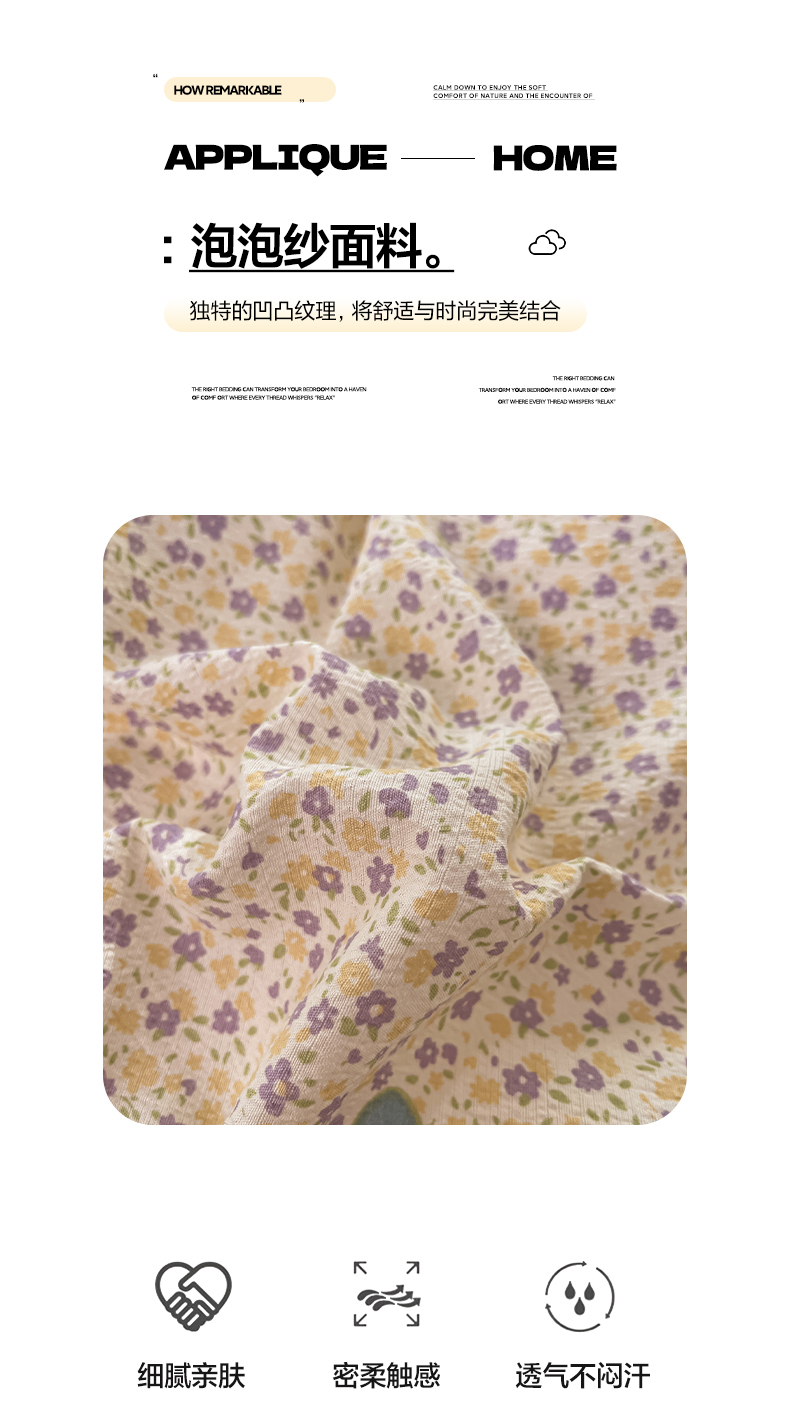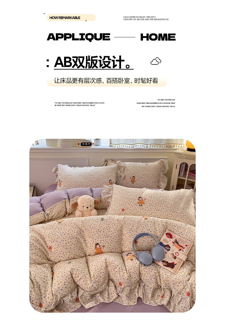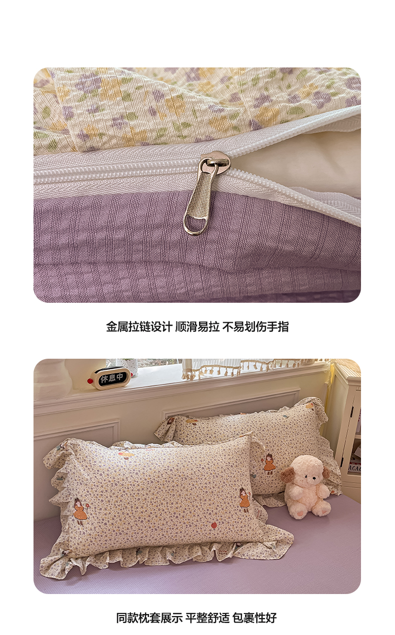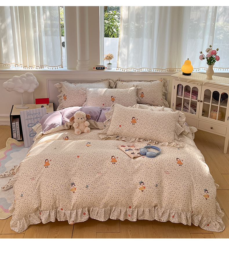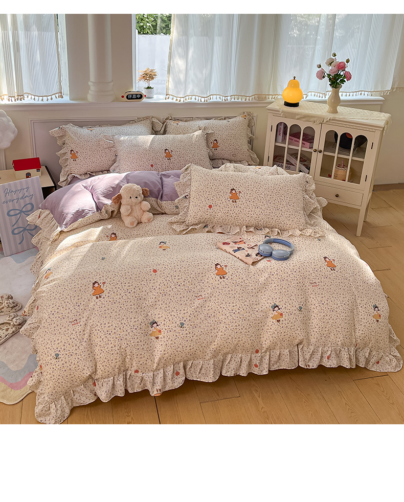 当前位置: 91家纺网 > 商品网购 > 床品套件 > 四件套 > 其它四件套 > 摩妮卡 2026新款泡泡纱韩版印花花边四件套 玫果少女