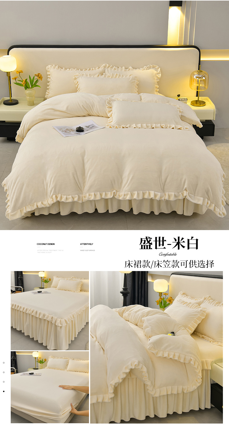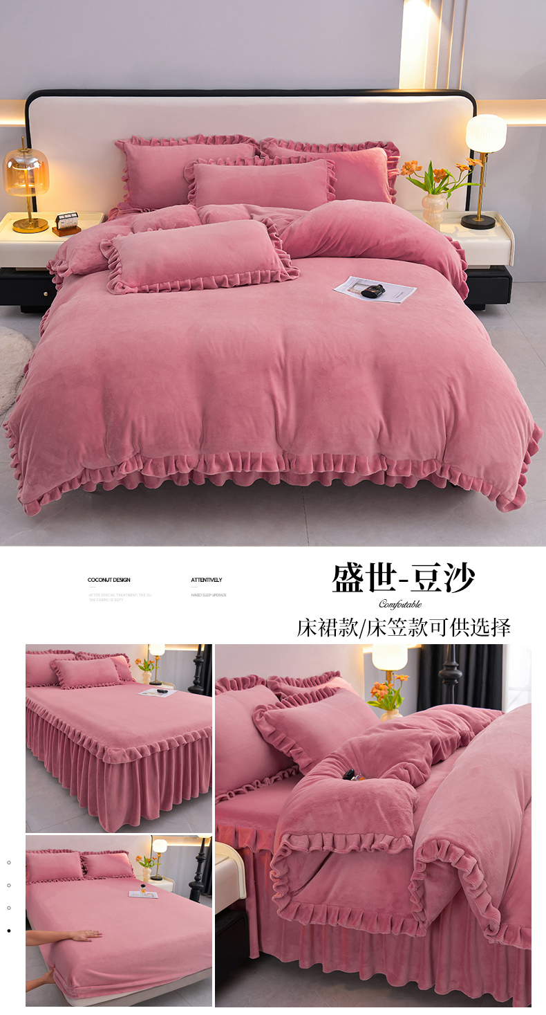 当前位置: 91家纺网 > 商品网购 > 床品套件 > 四件套 > 牛奶绒四件套 > 优家居工厂店 2026新款纯色韩版牛奶绒花边床裙床笠四件套单件被套直播爆款 盛世-翠绿