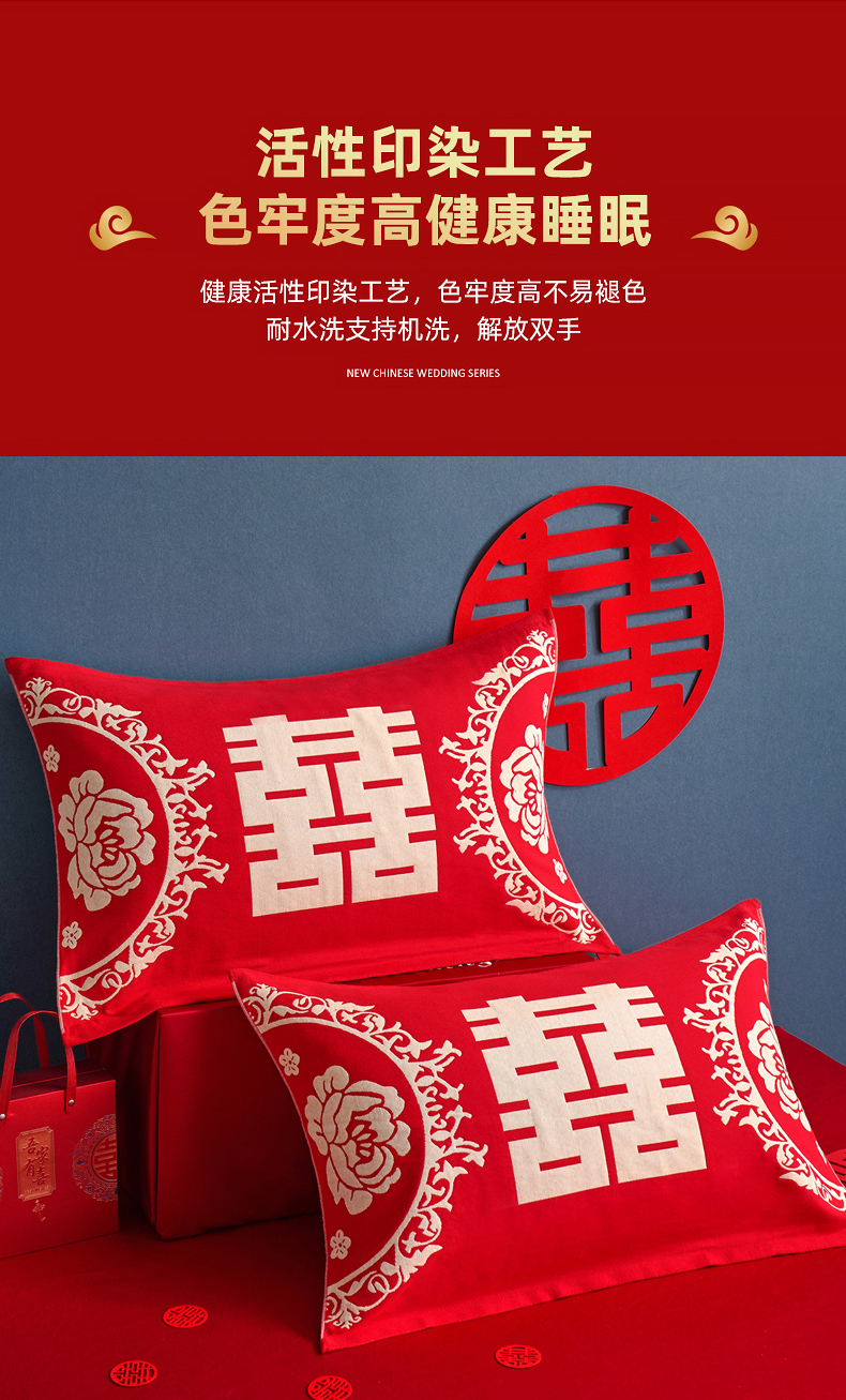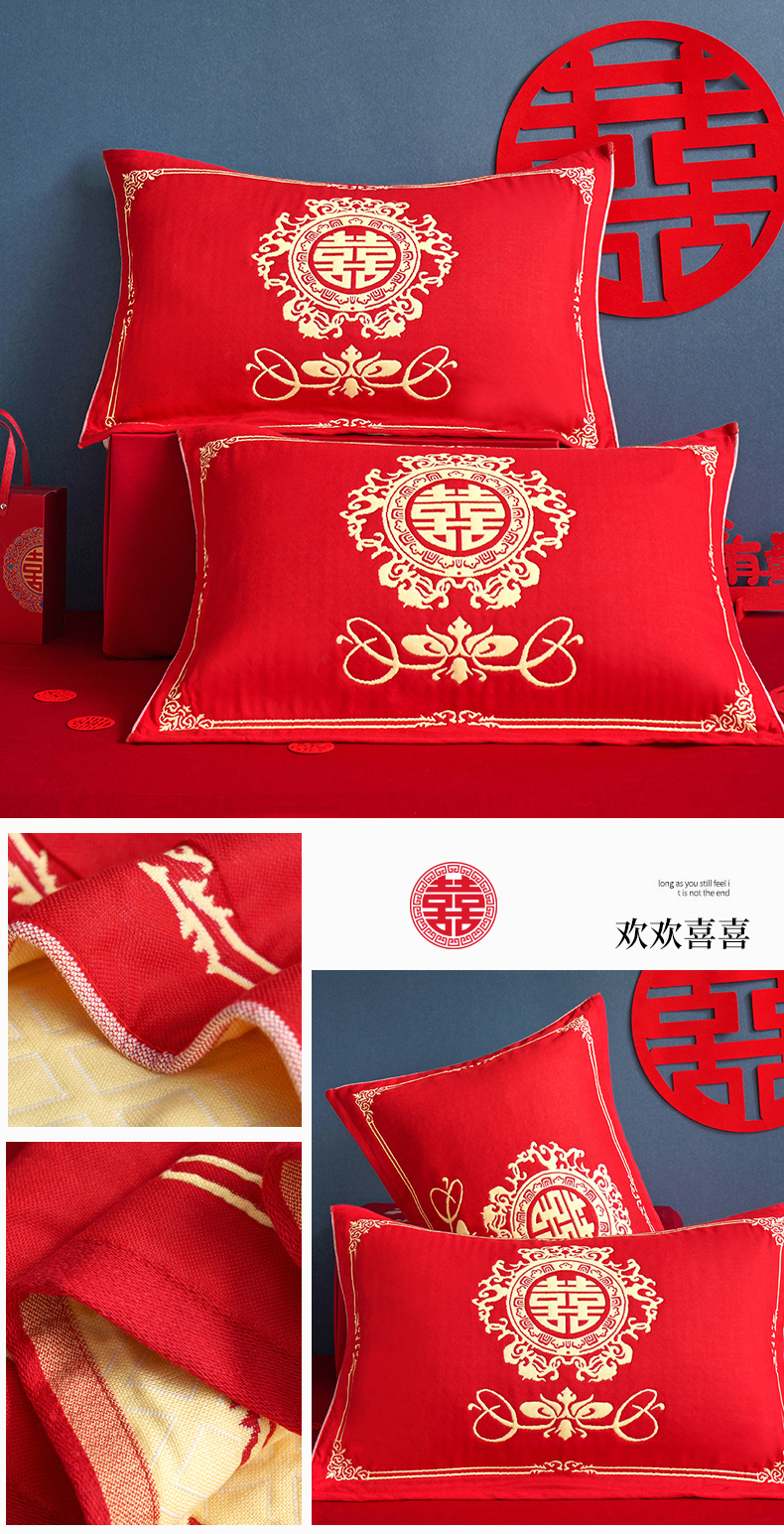 商品名称:朴尔家纺-毛巾被 2026新款全棉40股结婚大红多层纱布透气情侣婚庆枕巾 我们结婚啦