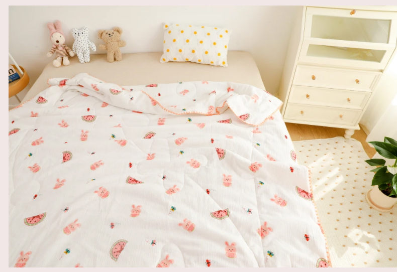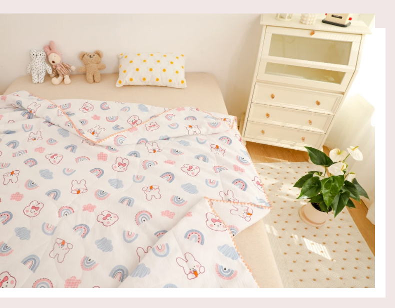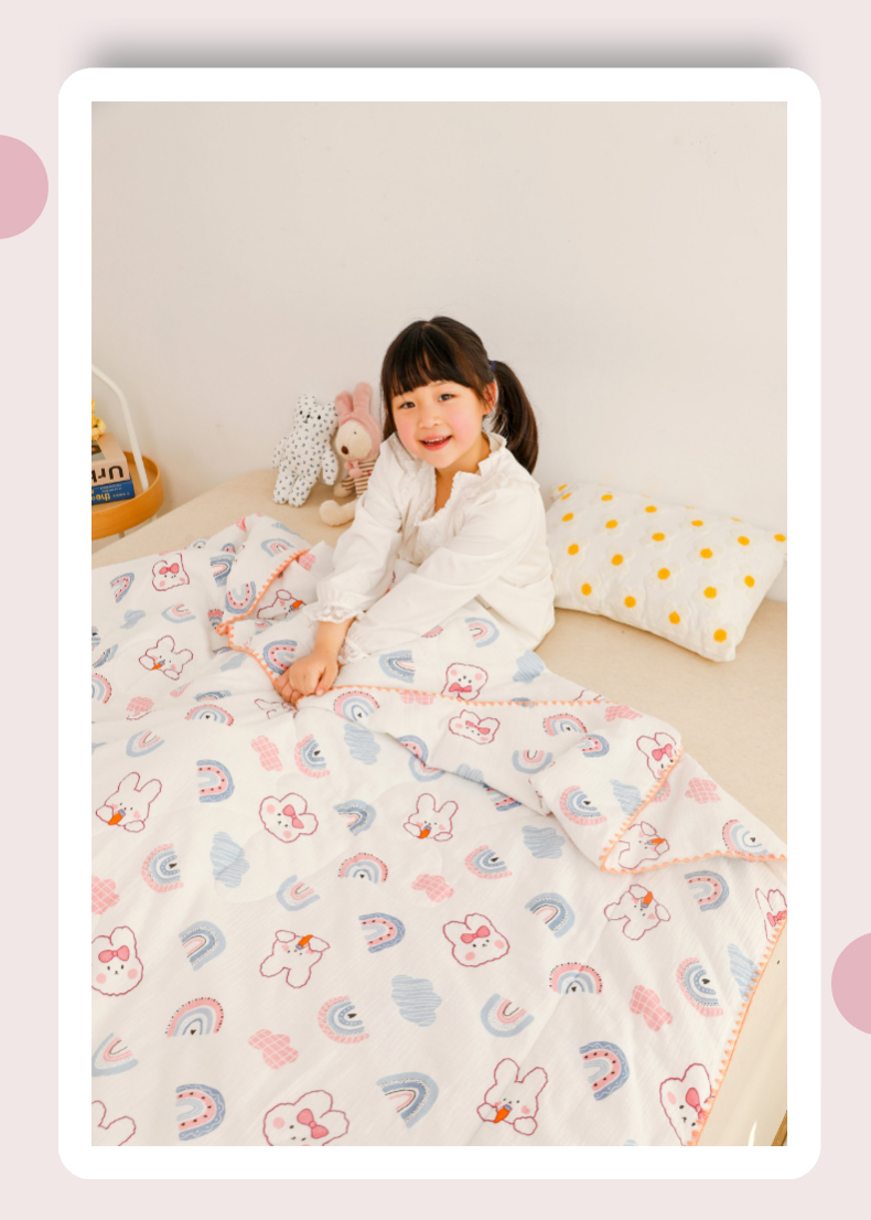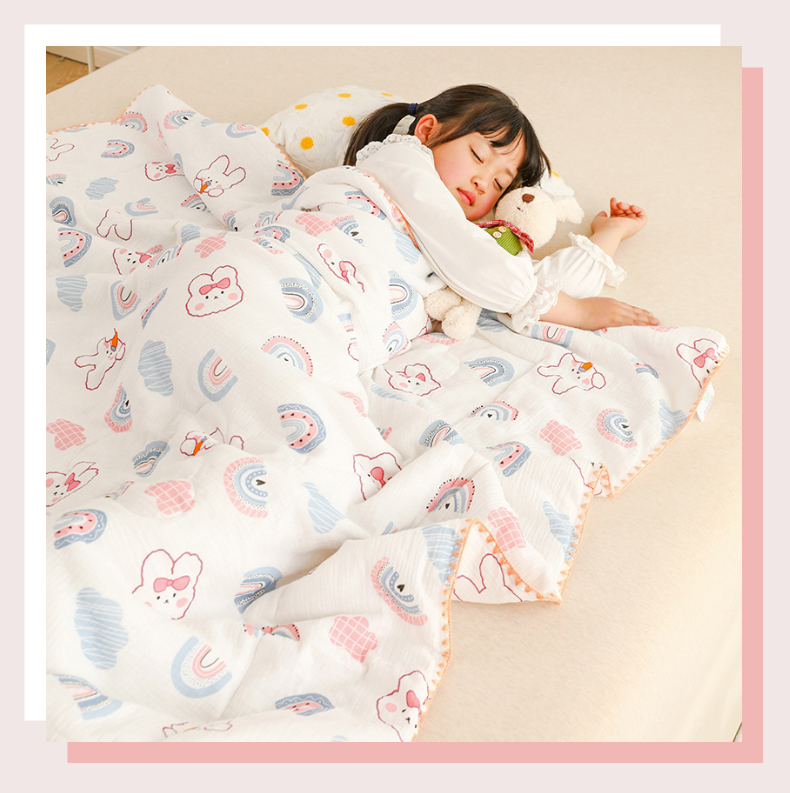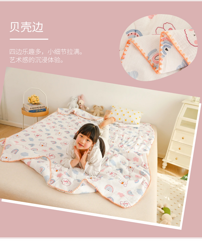 (总)十九色 2024新款华夫格纱全棉儿童夏凉被双层纱空调被,兔公主粉,相识,小马粉,小树林,小熊蓝,遇见,长颈鹿,草莓派,聪明鸭