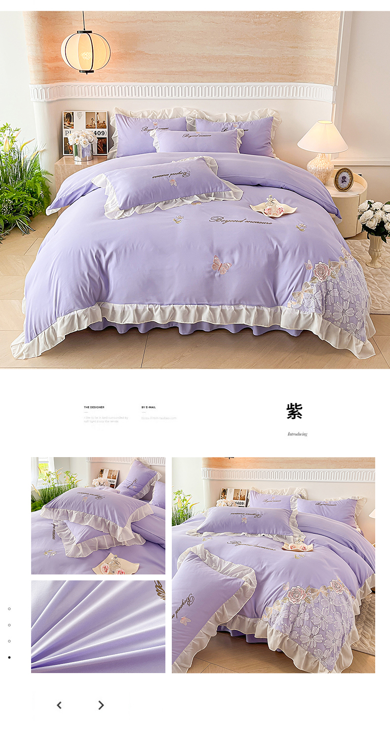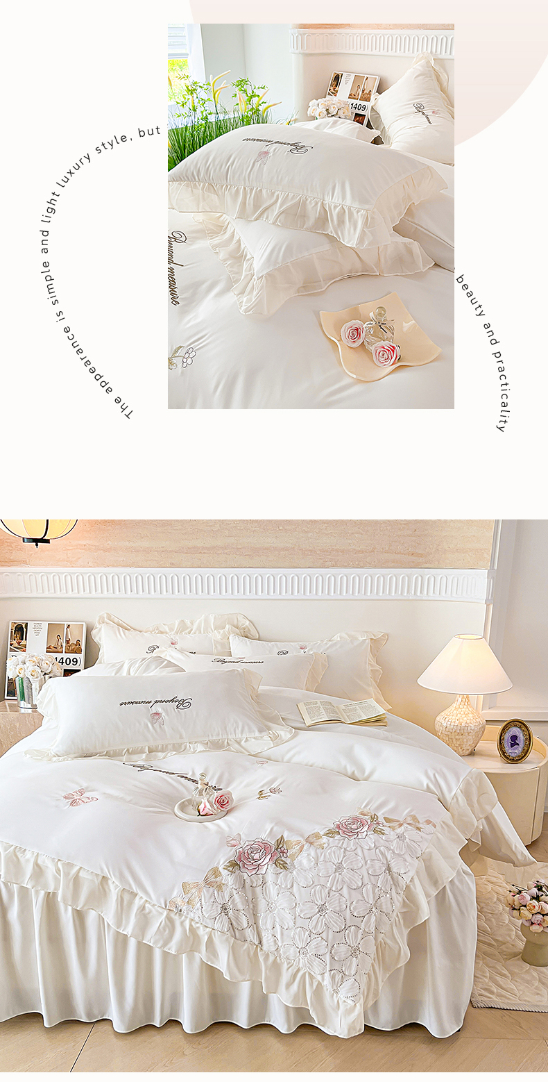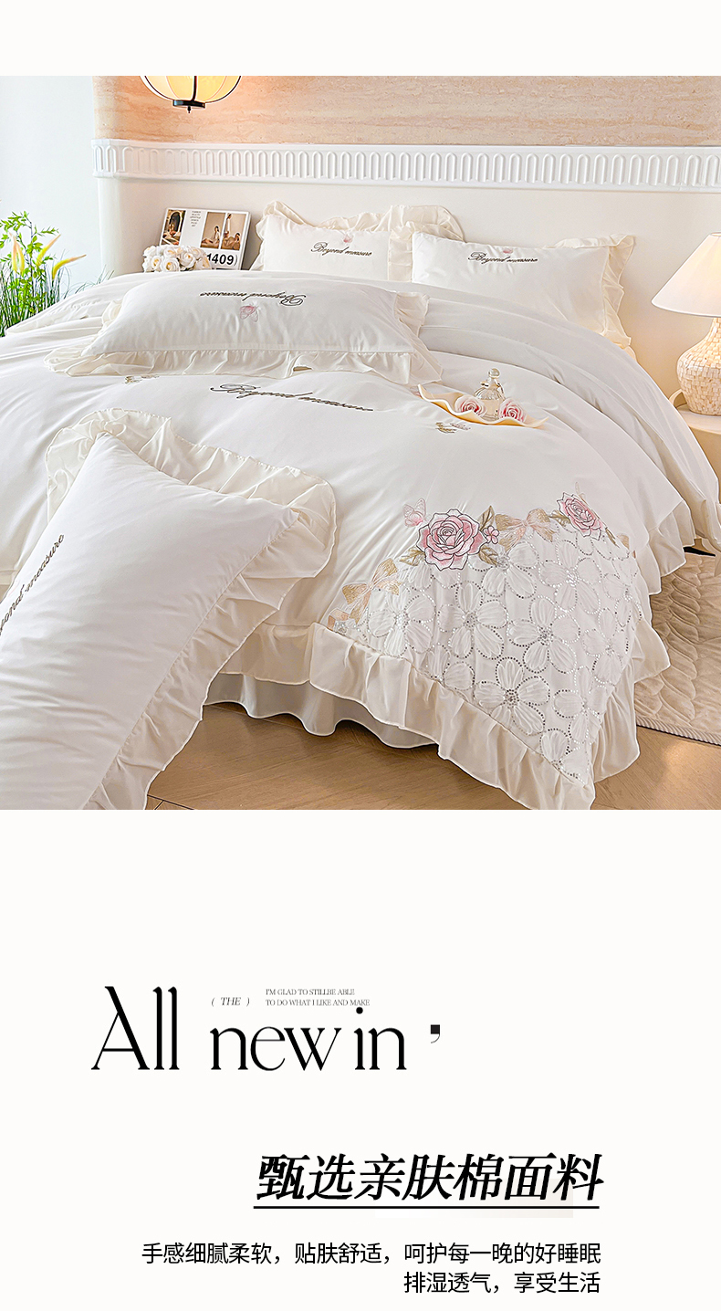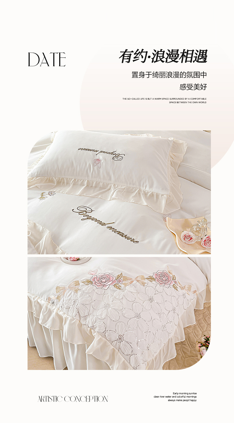(总)富宁家纺 2025新款蕾丝刺绣数码印花款四件套-浅影玫瑰,粉,白,黄,蓝,绿,紫