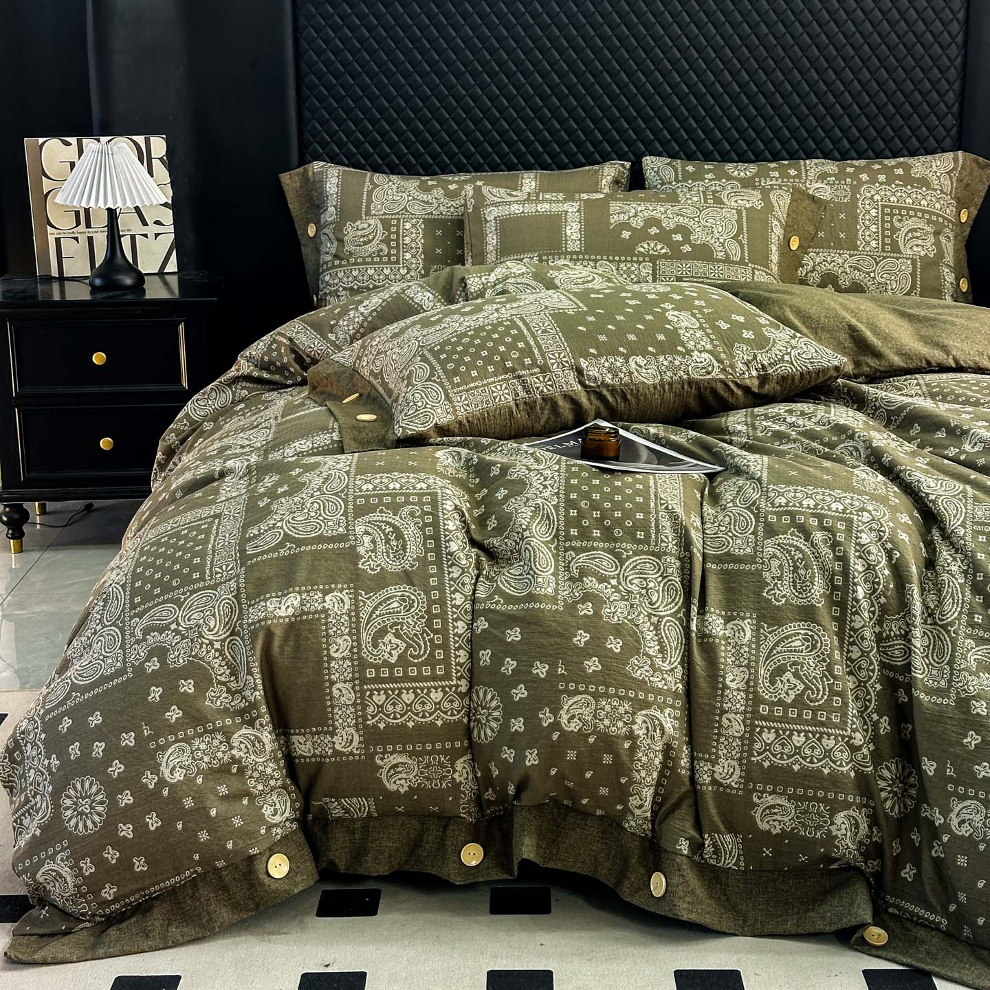 当前位置: 91家纺网 > 商品网购 > 床品套件 > 四件套 > 其它四件套 > 晚爱家纺(原晚安家居) 2026新款加厚双层纱原麻纽扣款四件套 花溪棕