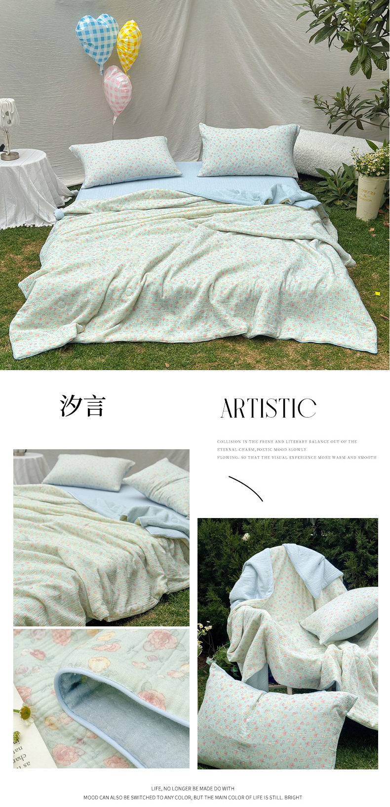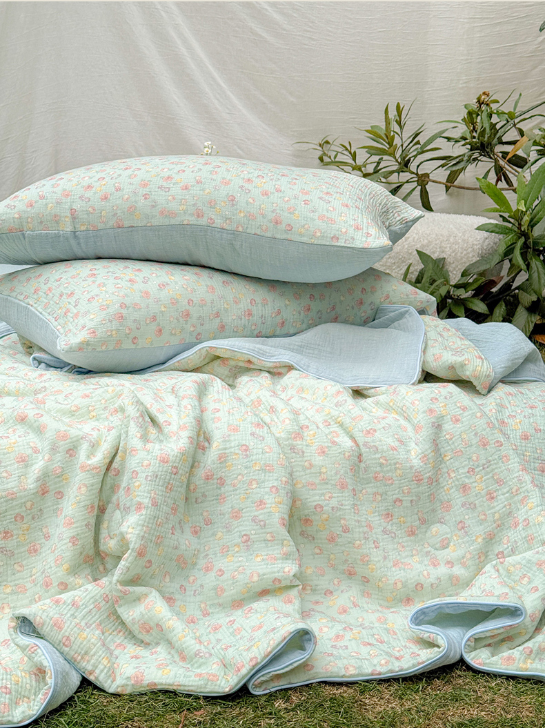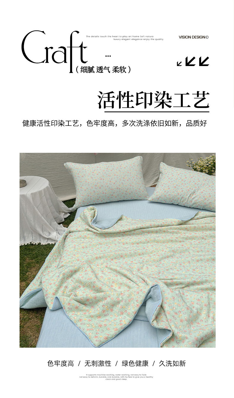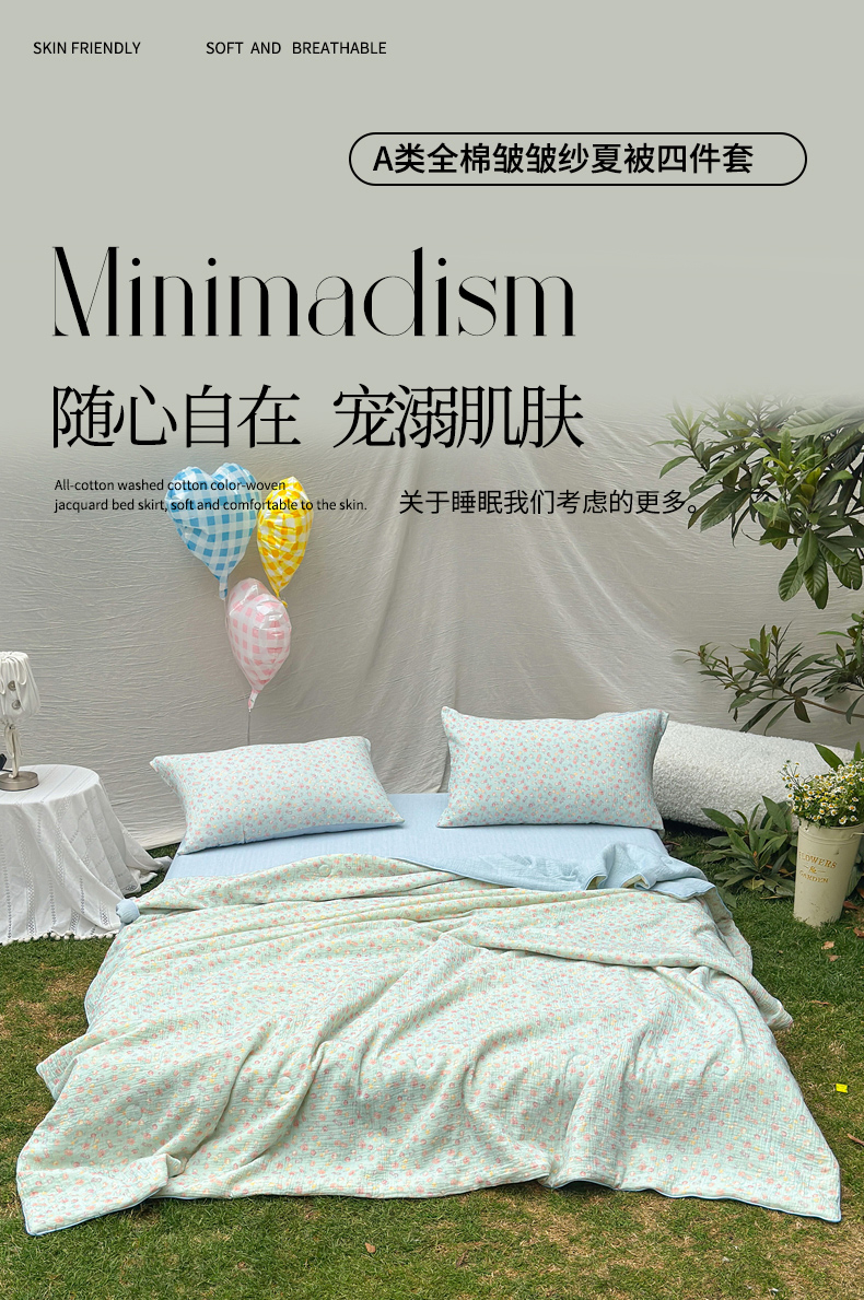 • 91家纺网 家纺一手货源 找家纺 木楌家居 2026年新款全棉皱皱纱夏被夏凉被空调被夏被四件套 汐言