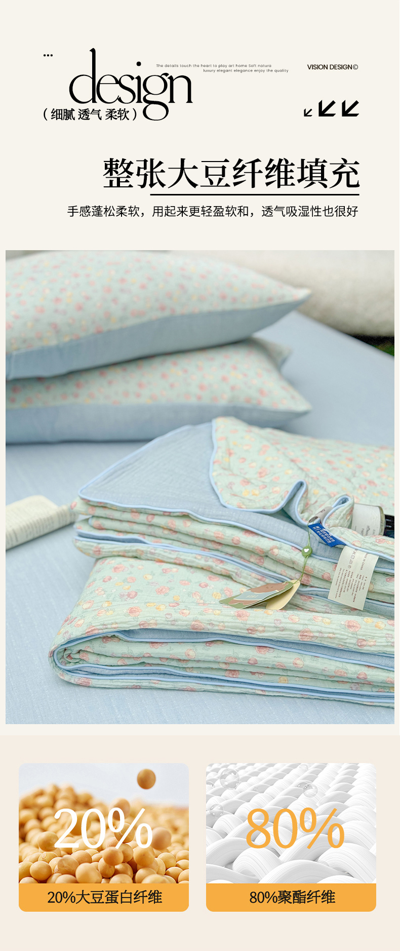 • 填充纤维种类: 大豆蛋白改性聚酯纤维