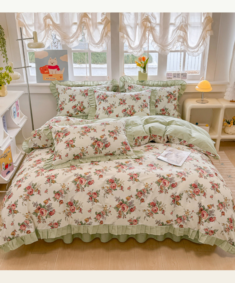 当前位置: 91家纺网 > 商品网购 > 床品套件 > 四件套 > 全棉普通四件套 > 缦彩 2026新款纯棉花卉公主风大花边床裙四件套 奢香夫人