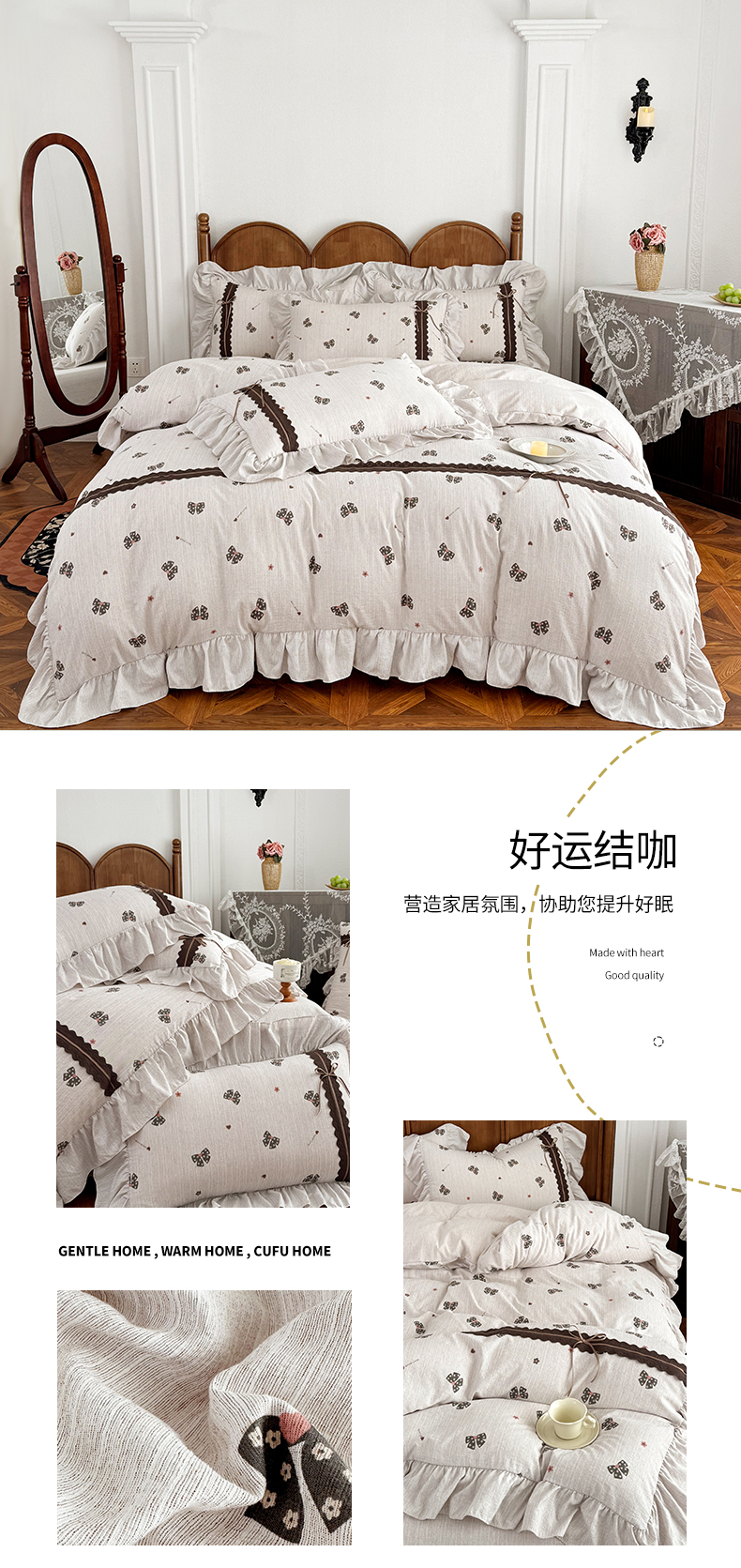 (总)迷尚家居 2025新款复古色织仿棉麻全棉花边四件套,迪奥咖-棉麻,风木槿咖-棉麻,枫林晚-棉麻,古奈绿-棉麻,锦瑟-棉麻,俏颜-棉麻,秋恋红-棉麻,颂青时-棉麻,砚秋紫-棉麻,玉环-棉麻,玉茗-棉麻