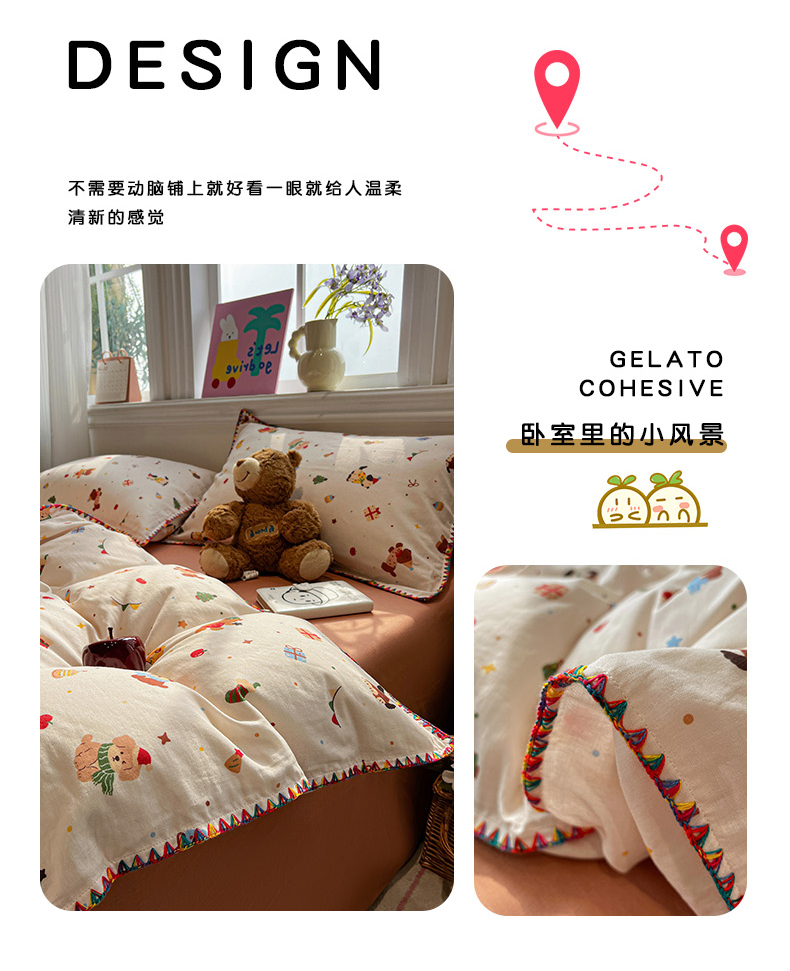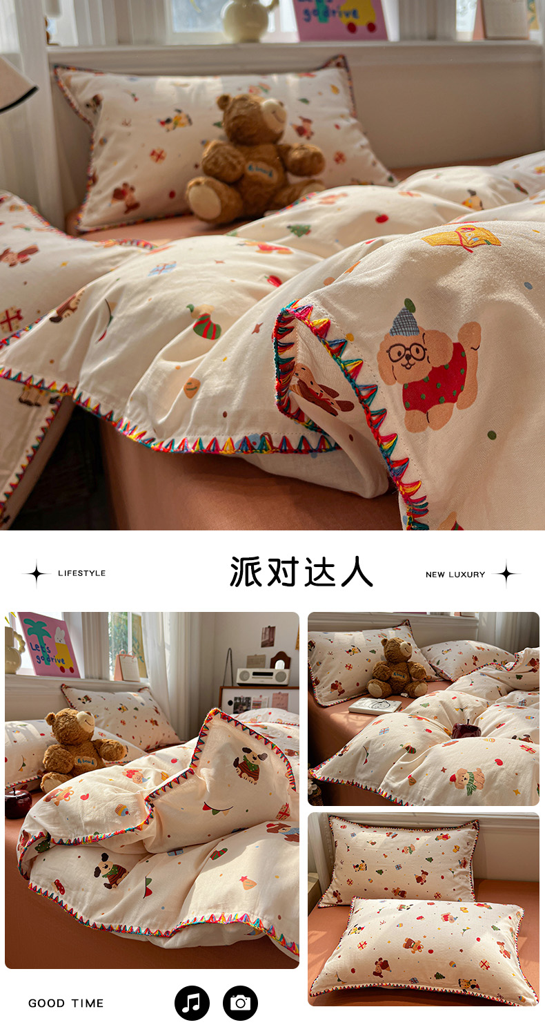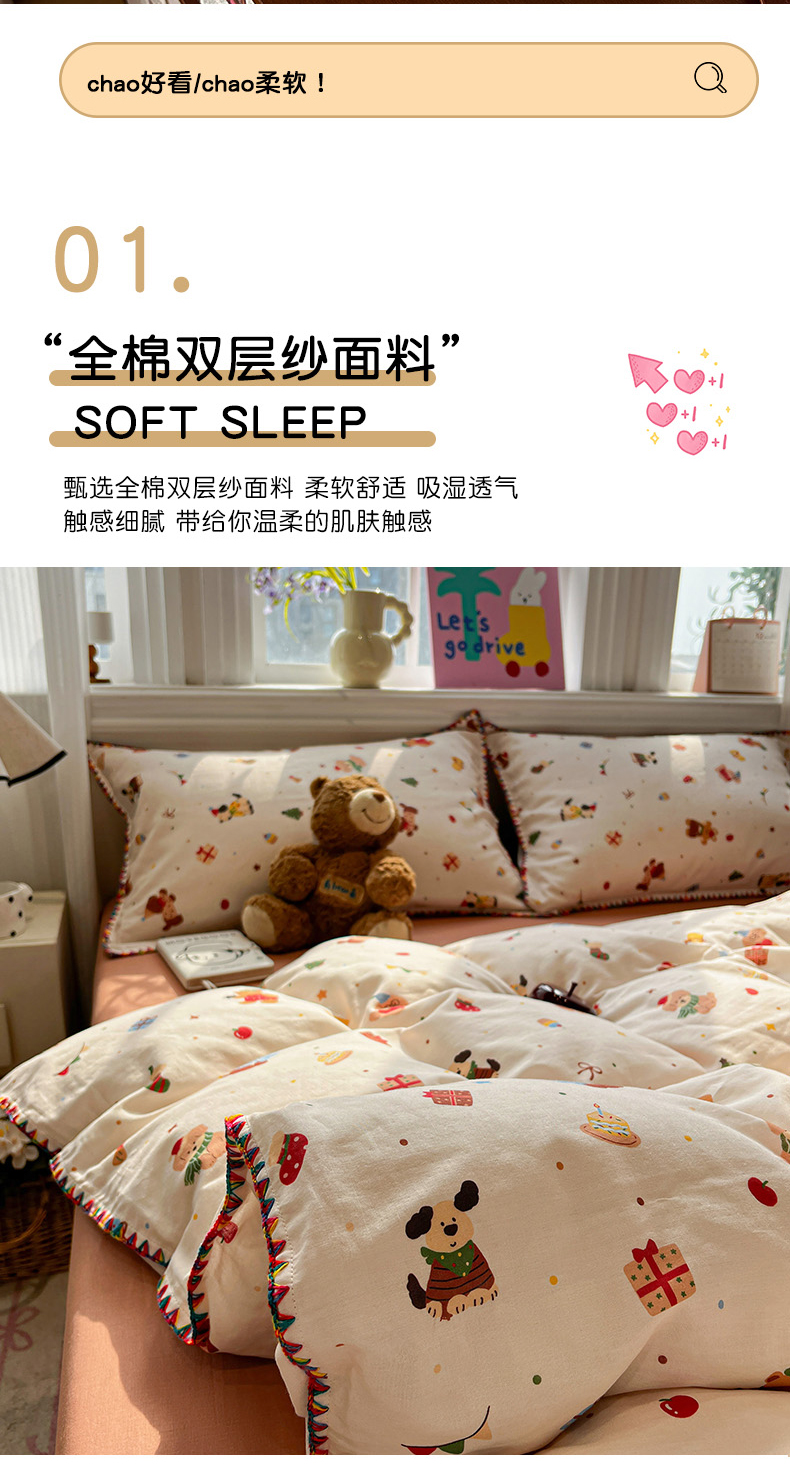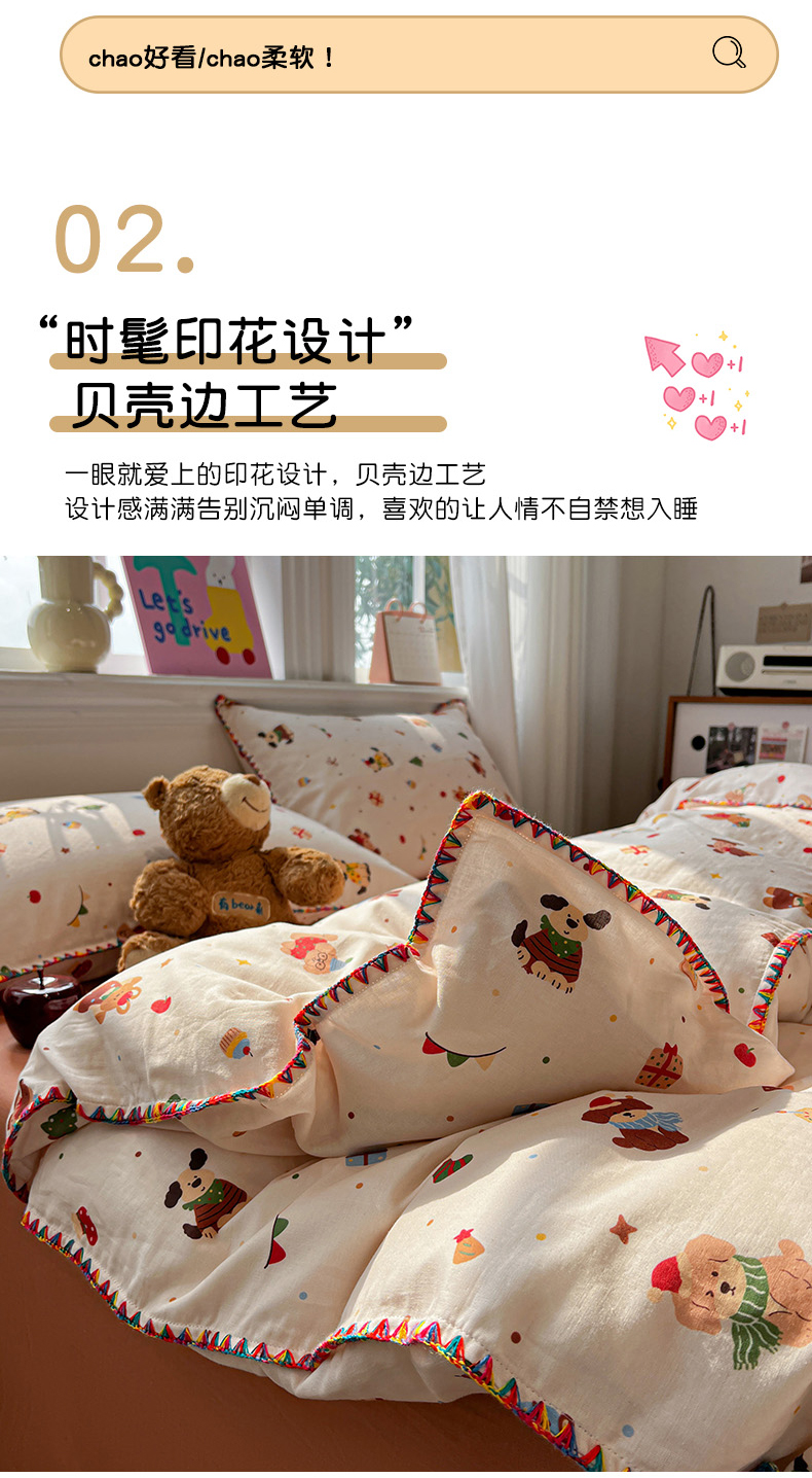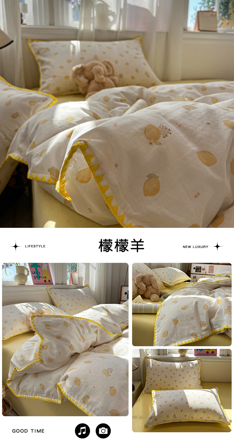 商品名称:(总)忆生活家纺 2026新款A类全棉有氧双层纱贝壳边三角针四件套