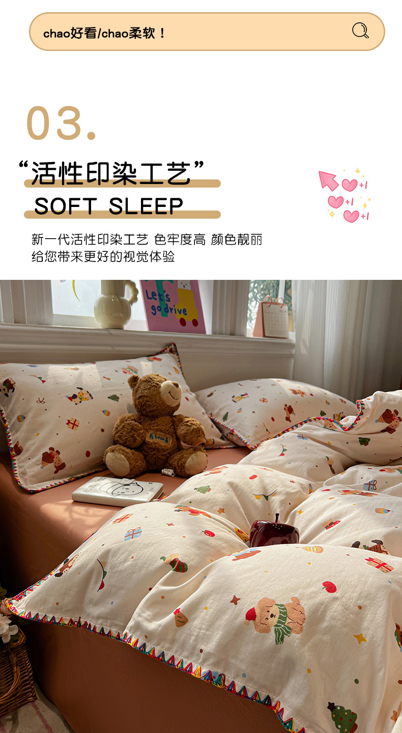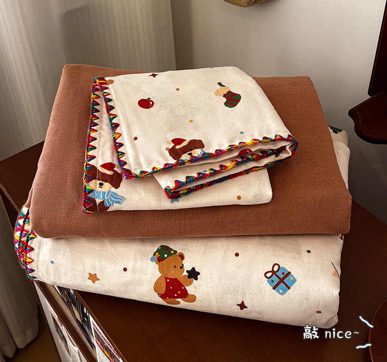 (总)忆生活家纺 2025秋冬新品软糯缇肤绒印花贝壳边四件套,卡拉-灰,开心熊-米,南笙-咖,南笙-绿,浅夏-咖,素影-酒红,素影-紫,小樱桃-酒红,叶茂-驼