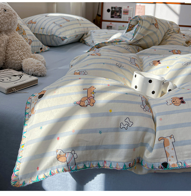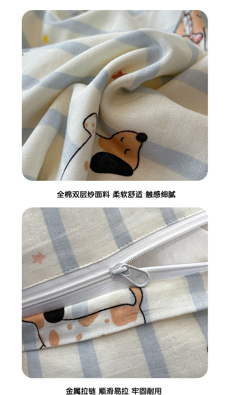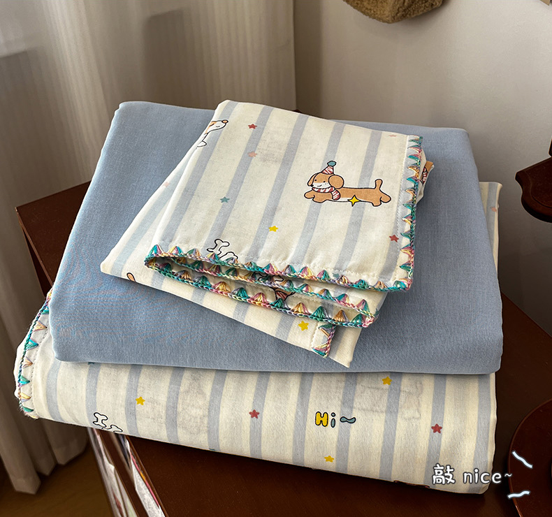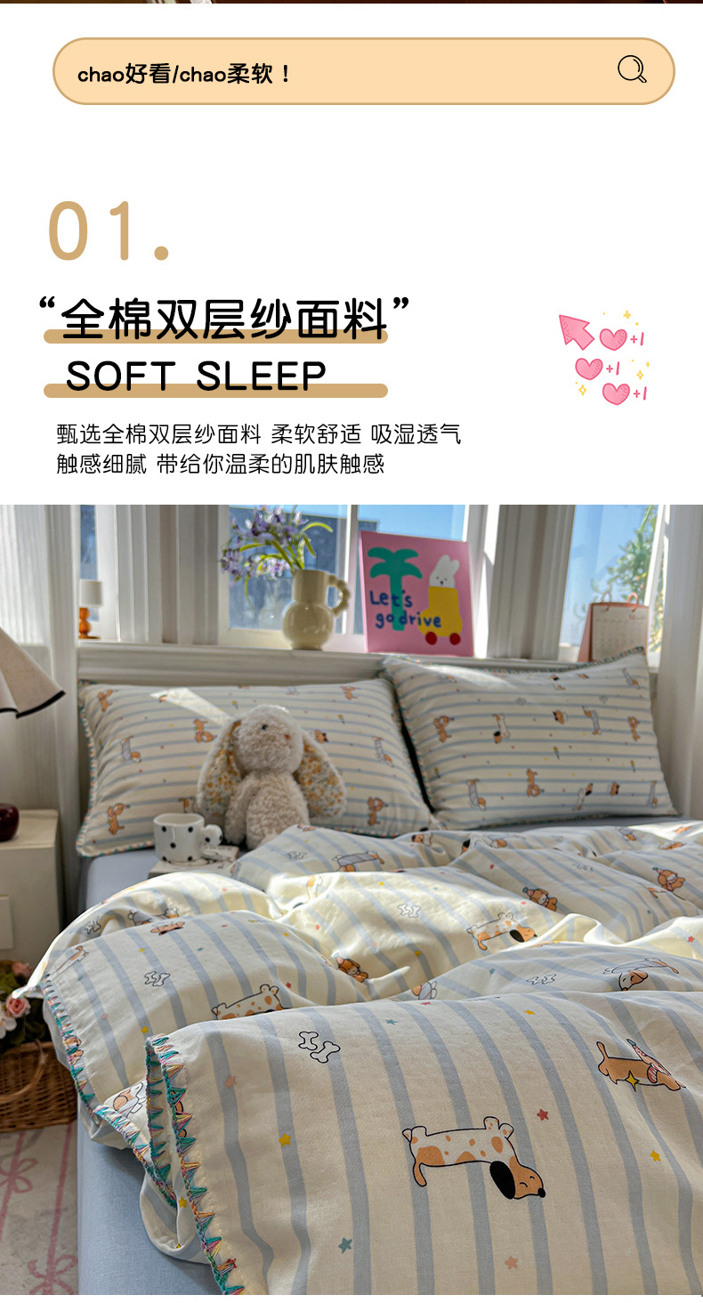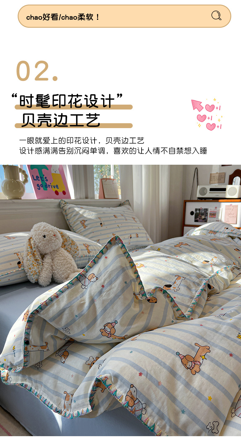 商品名称:(总)忆生活家纺 2026新款A类全棉有氧双层纱亲肤纯棉贝壳边三角针四件套