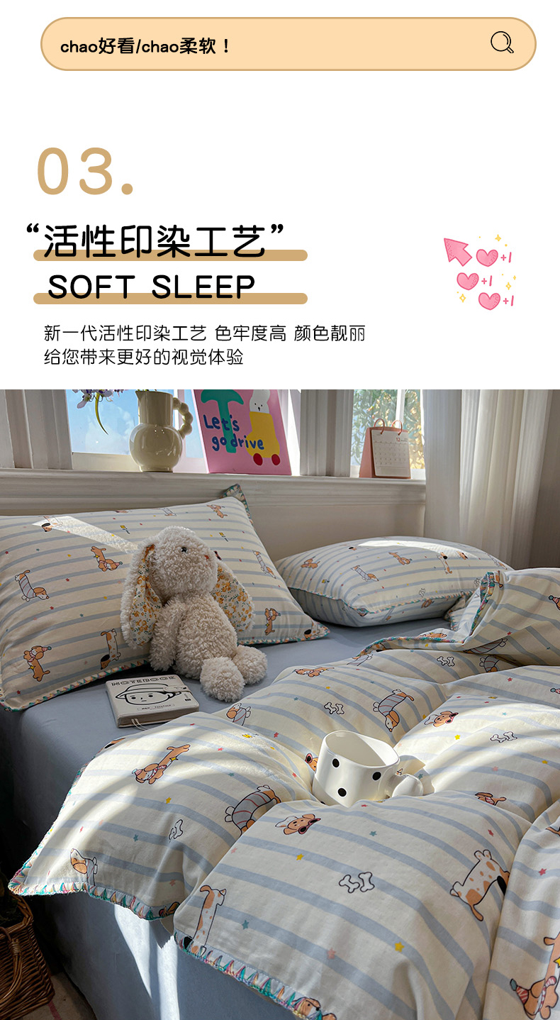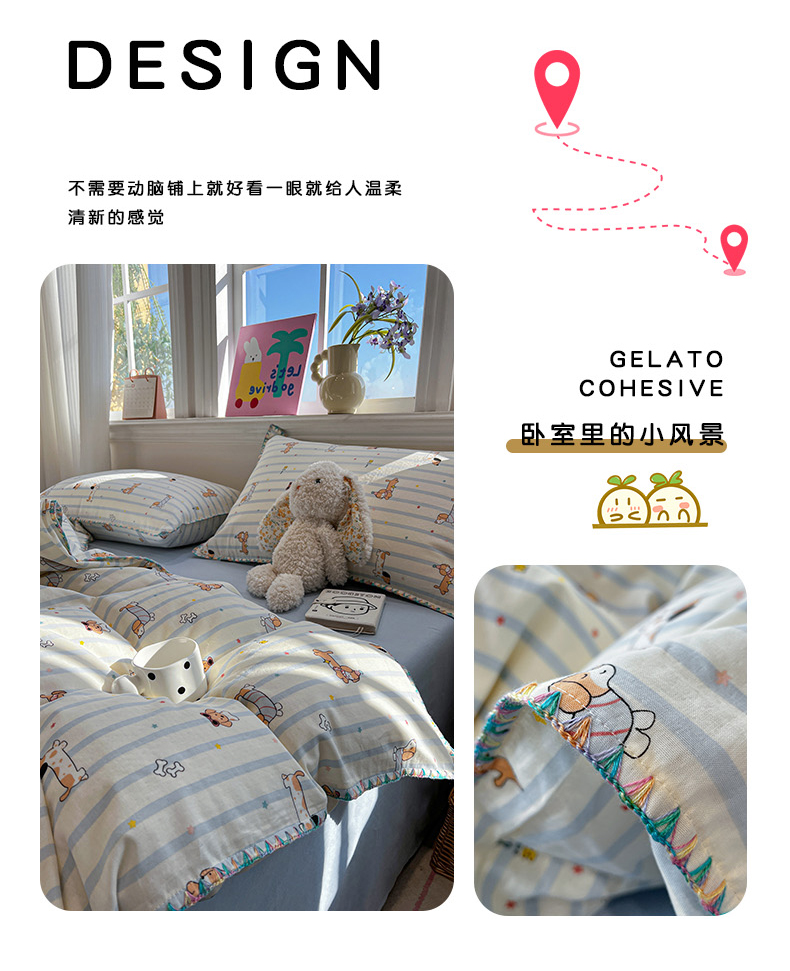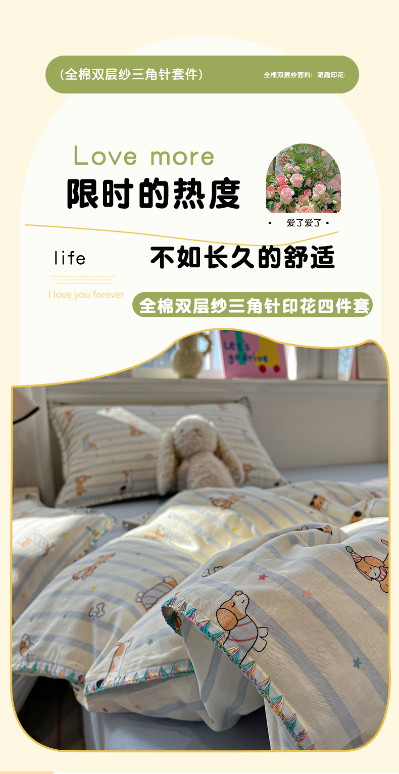 (总)忆生活家纺 2026新款棉麻小清新三角针贝壳边四件套,奔腾小马,快乐企鹅,蘑菇兔,清茉,桃白,微微,熊迪,花枝兔