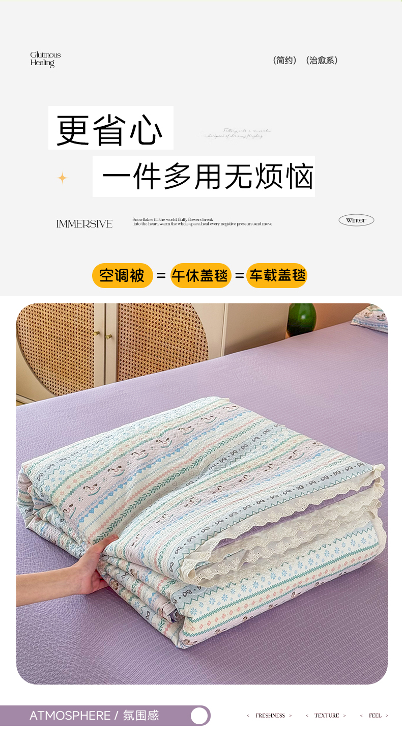 (总)艺菲阁家纺 2025新款花边款小碎花A类云感双层纱夏被,春风十里,海像深林,偏偏宠爱,倾心-米,人间草木,森田野园,相思-粉,相思-蓝