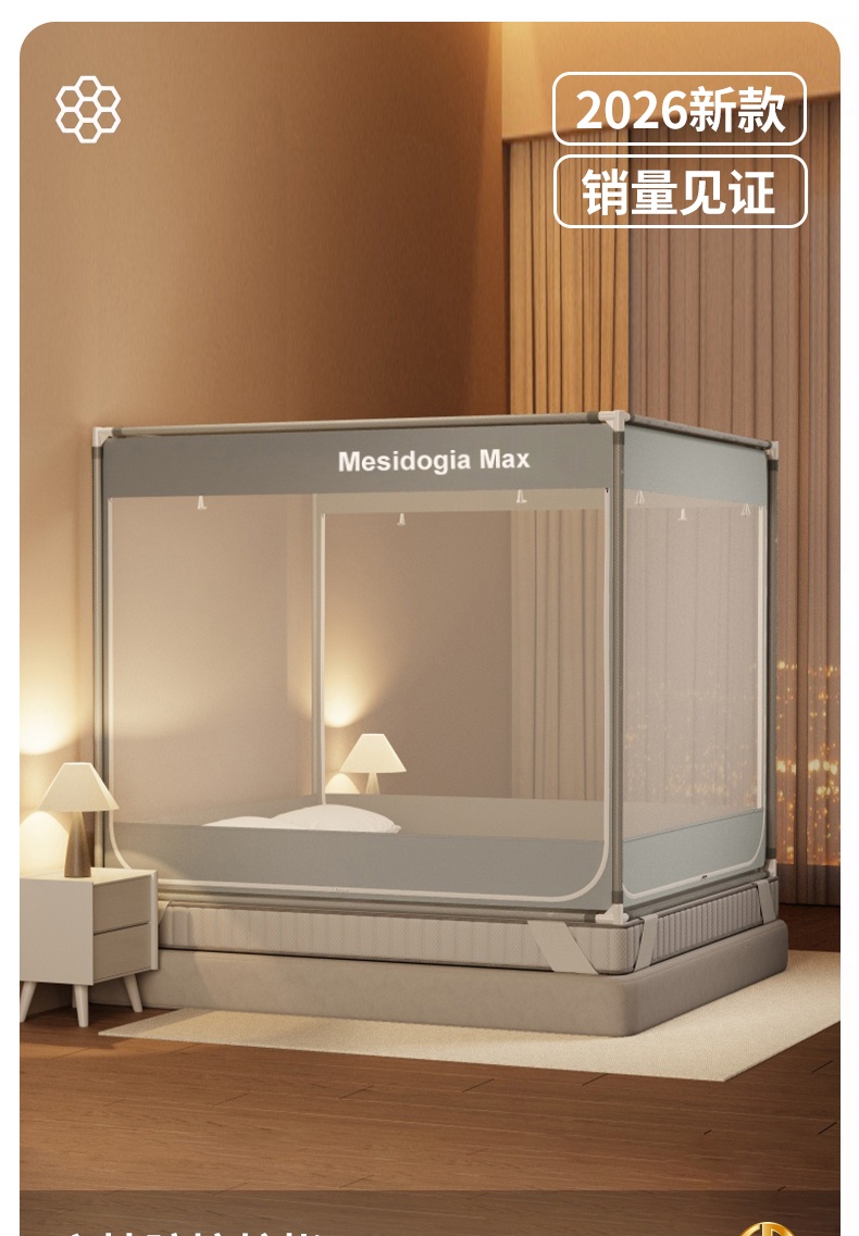 当前位置: 91家纺网 > 商品网购 > 床上用品 > 蚊帐 > 儿童蚊帐 > (总)友承家纺 2026新款方顶坐床蚊帐防摔蚊帐家用卧室免安装儿童婴儿防止掉床罩三开门加粗拉链加粗支架