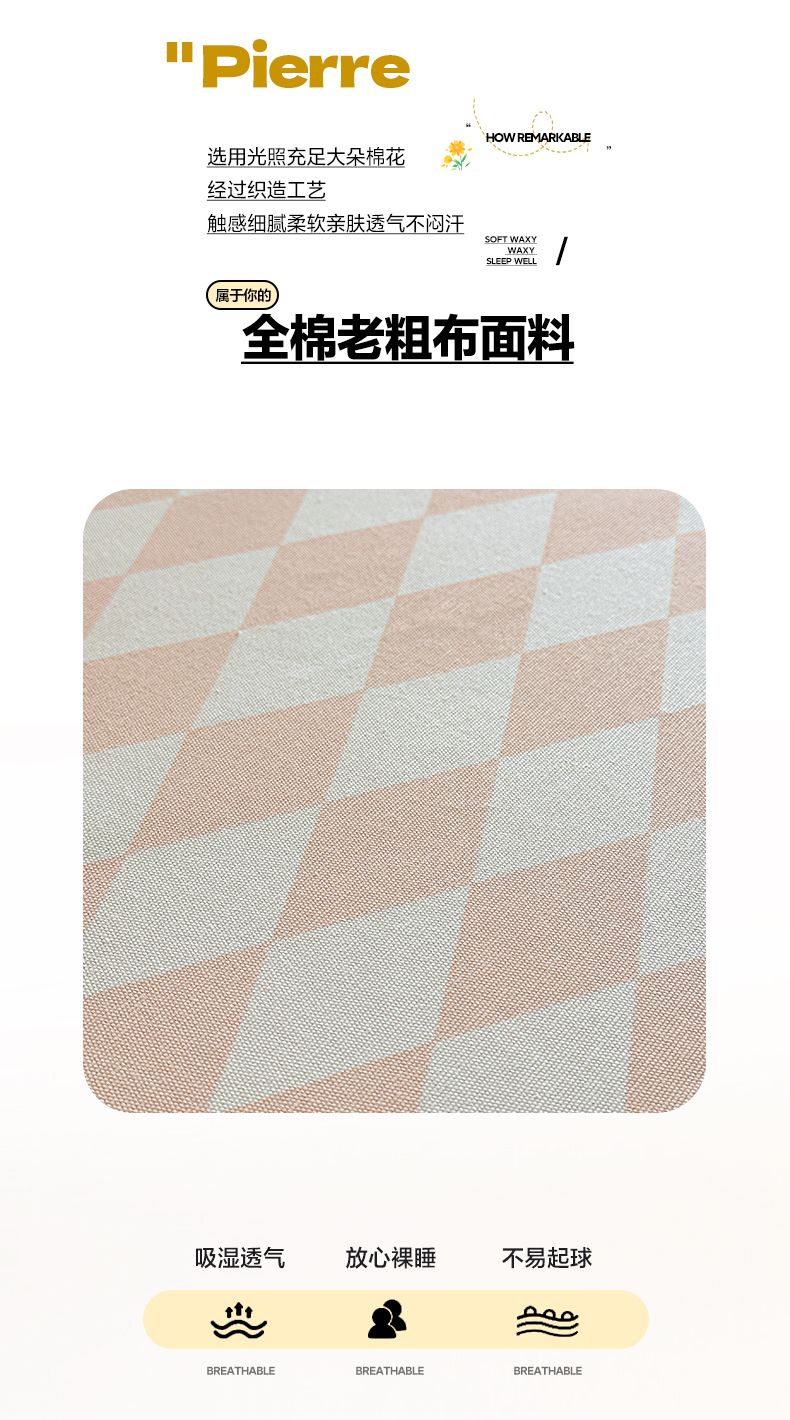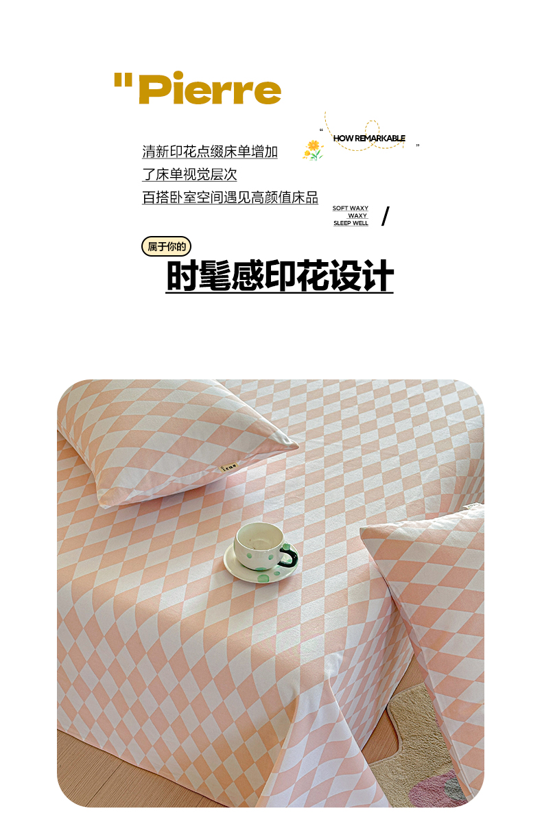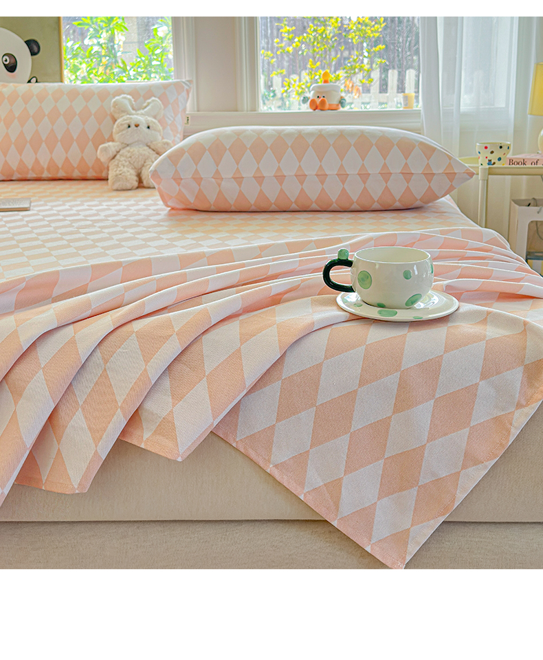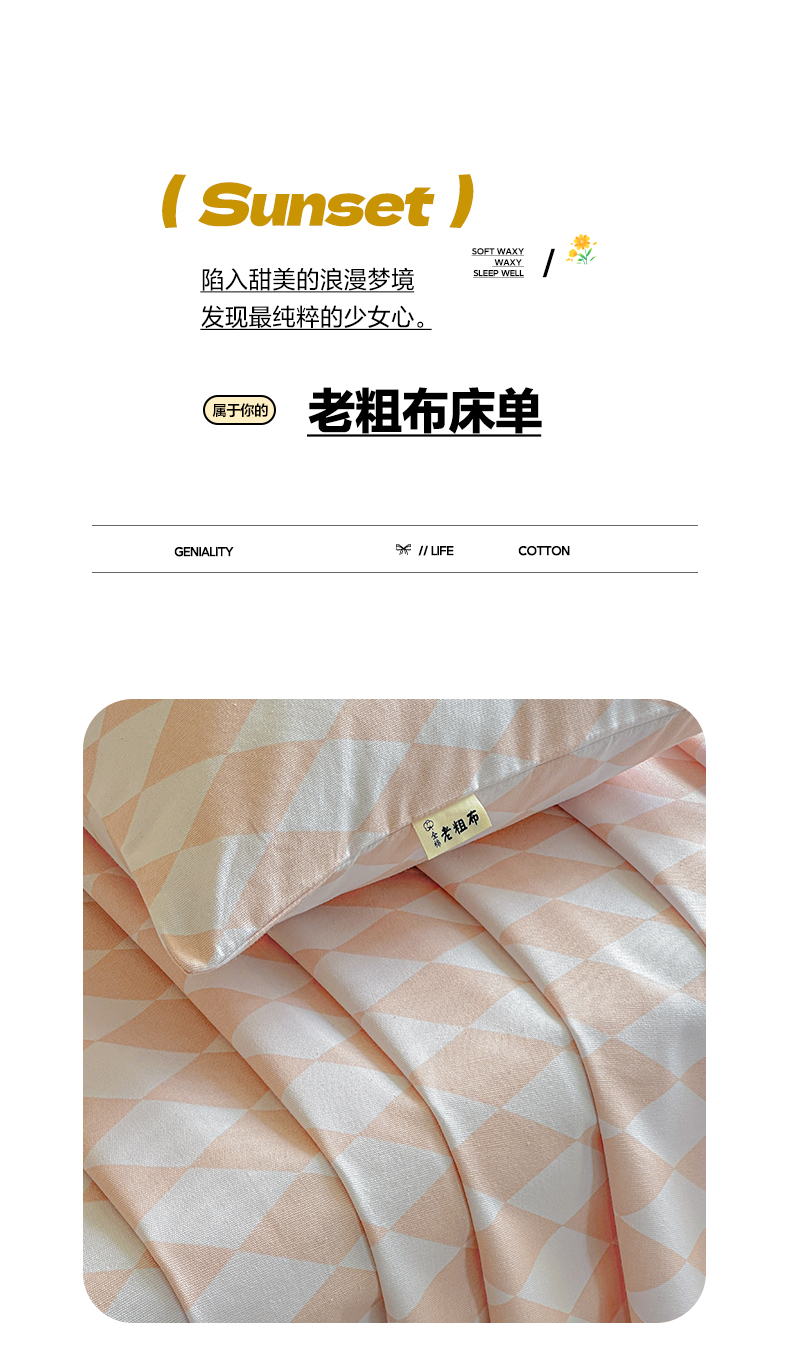 商品名称:莱登卡奴 2026新款A类100%全棉纯棉老粗布单床单系列 菱格米