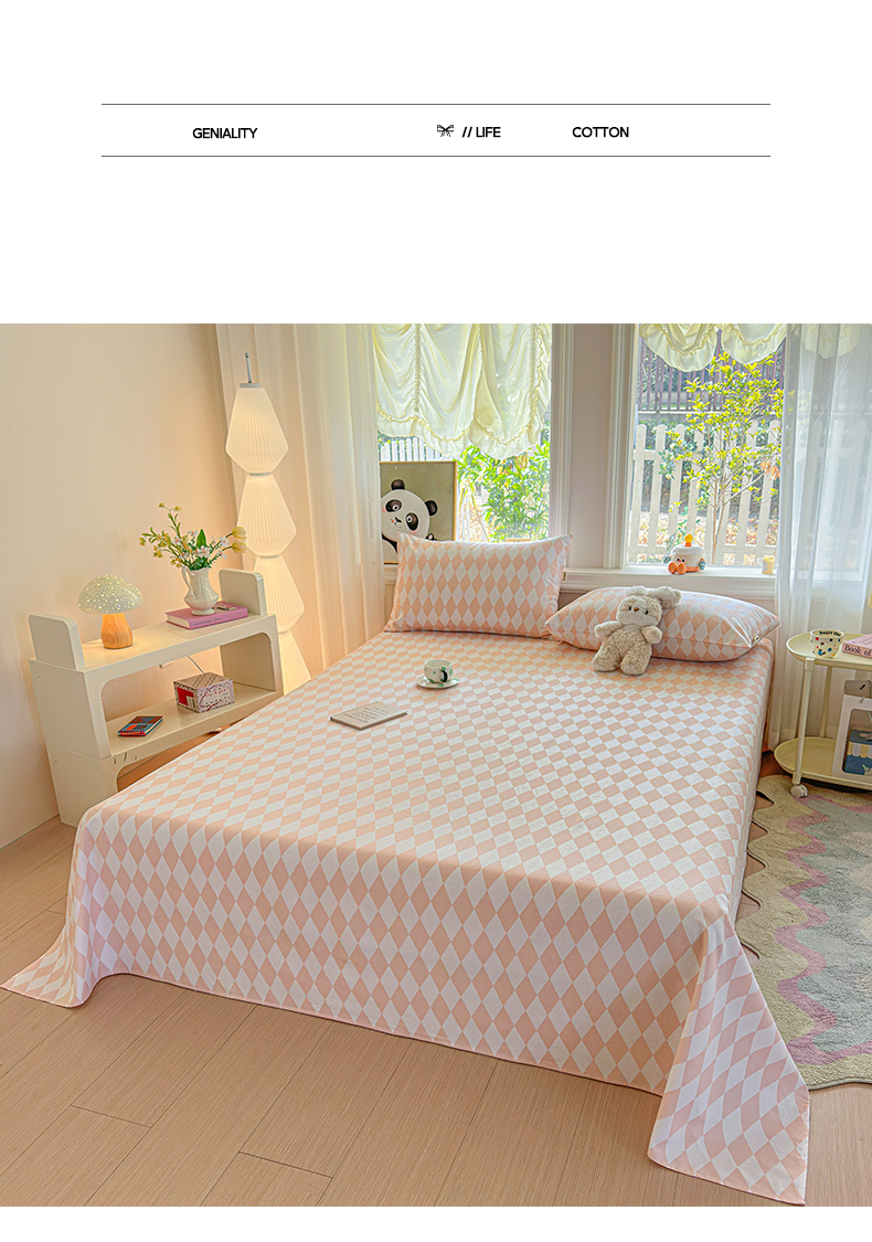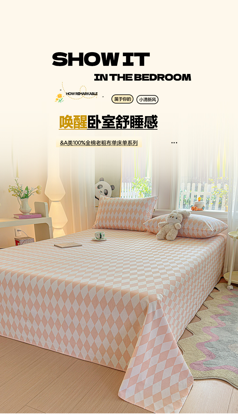 莱登卡奴 2026新款A类100%全棉纯棉老粗布单床单系列 菱格米