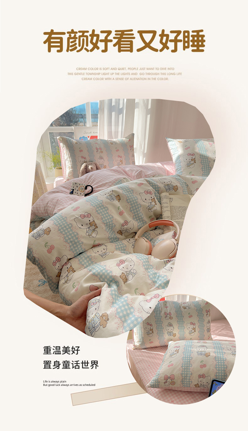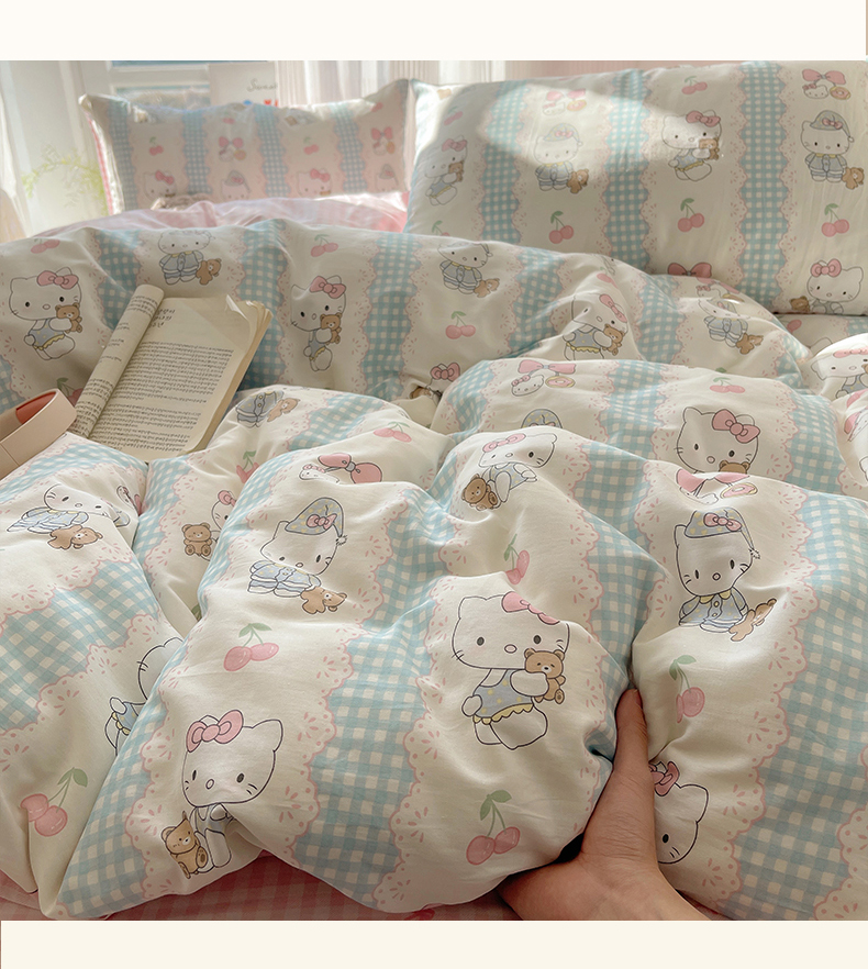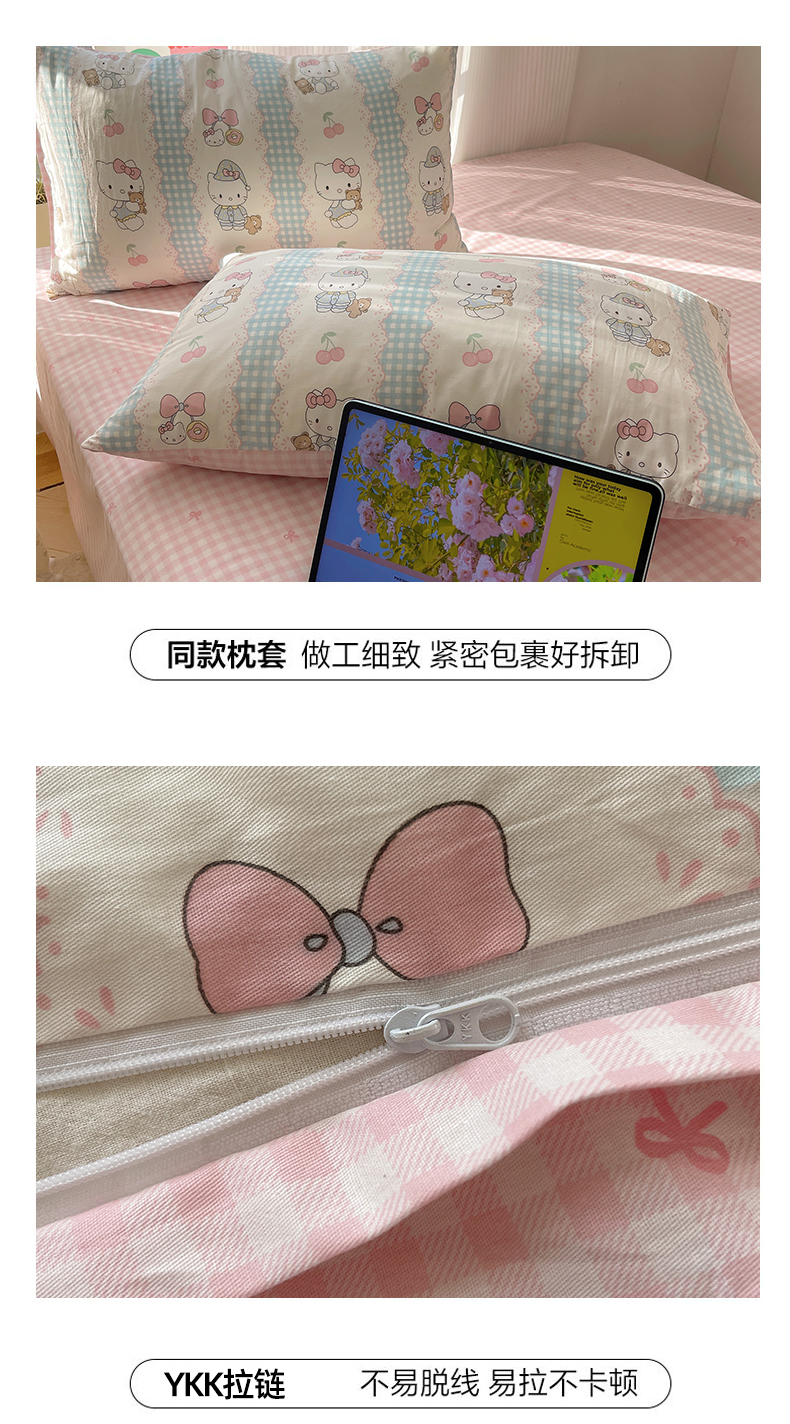 商品名称:六巷胡同 2026新款INS减龄可爱风卡通全棉四件套(第二系列) 萝莉樱桃猫