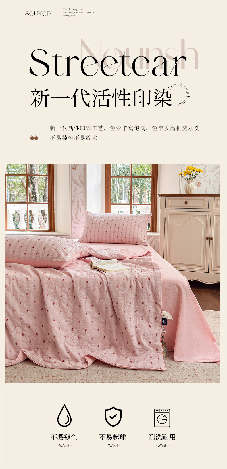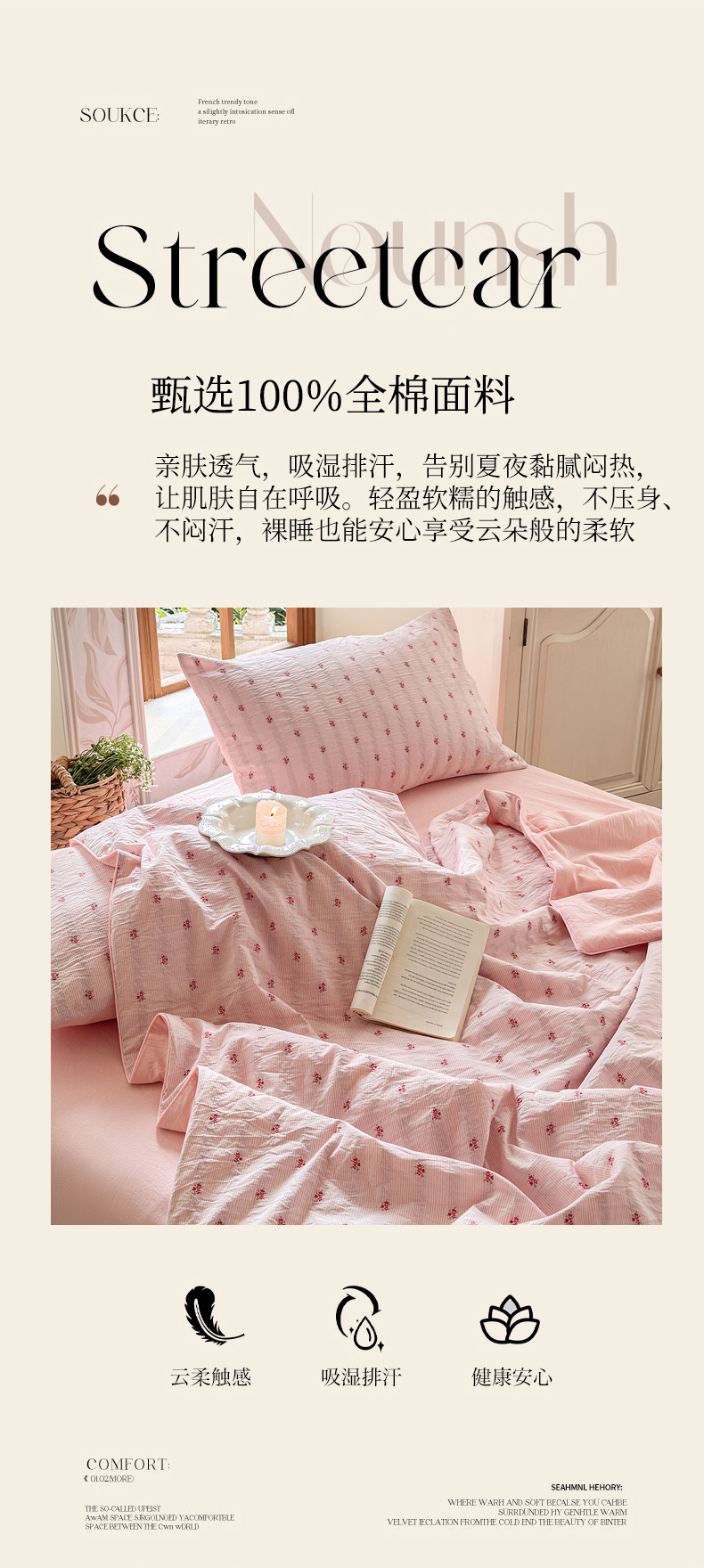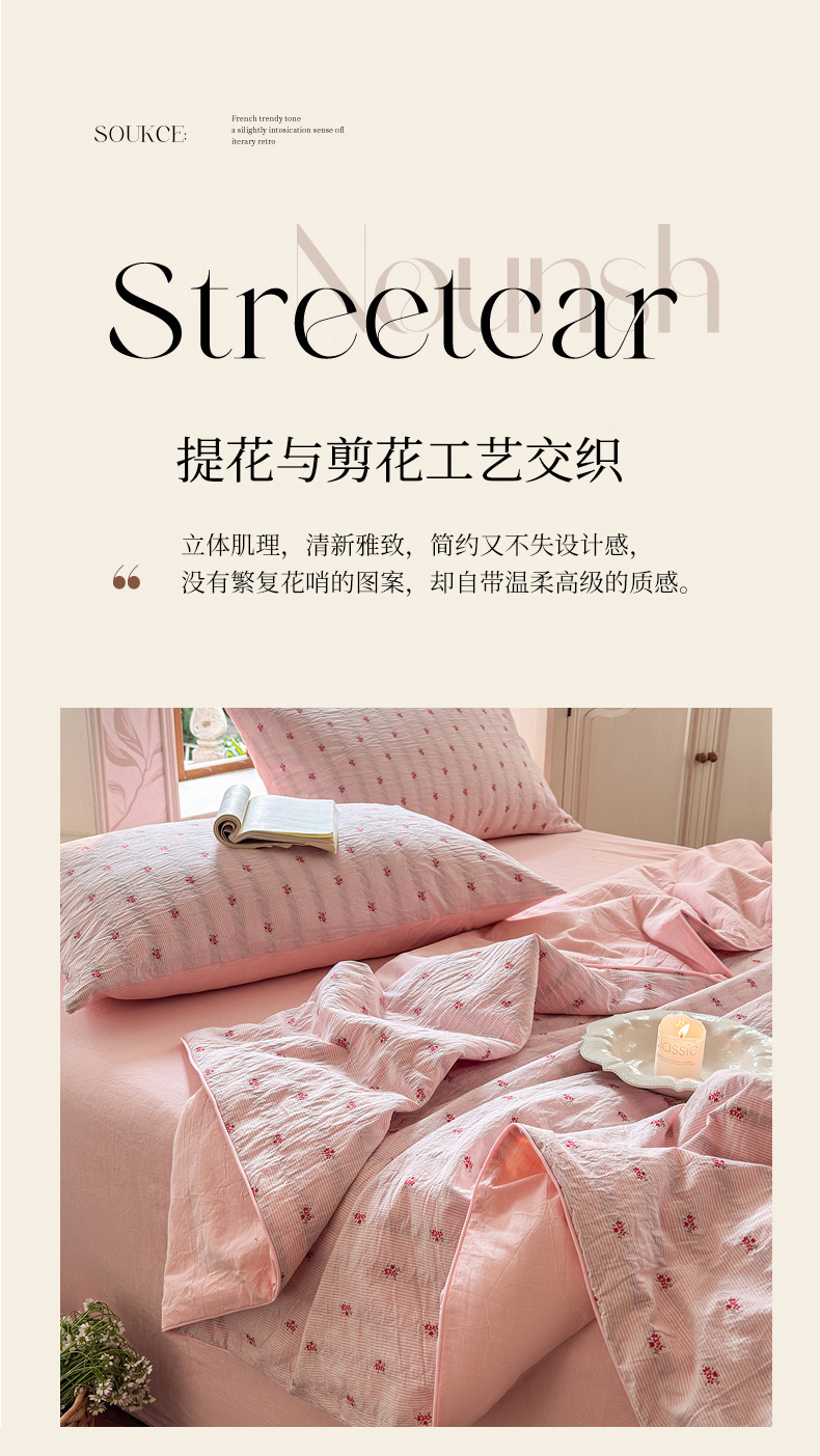 当前位置: 91家纺网 > 商品网购 > 床品套件 > 四件套 > 夏被四件套 > 木楌家居 2026新款全棉提花剪花夏被四件套 洛仪