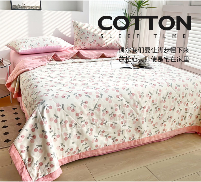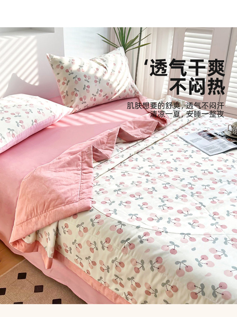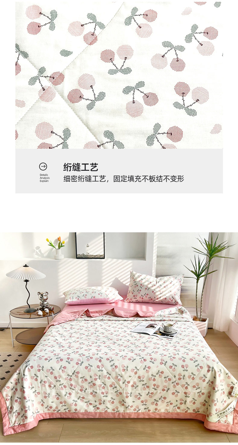 • 91家纺网 家纺一手货源 找家纺 黛妮雅 2026新款里外全棉印花棉花被纯棉夏被夏凉被空调被 夏被四件套樱桃之恋