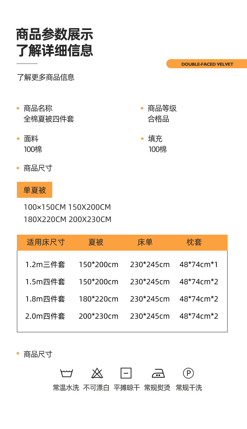 1.5m四件套:夏被150x200cm 床单230*245cm