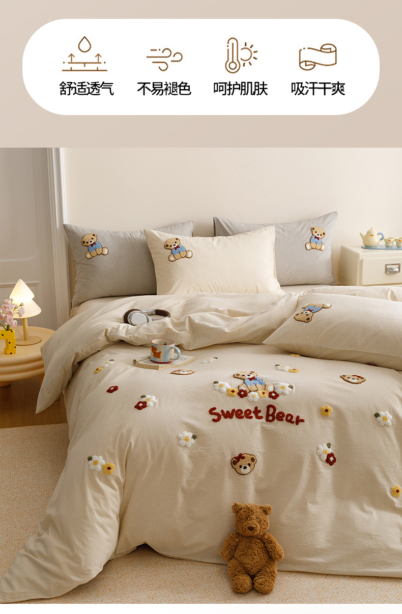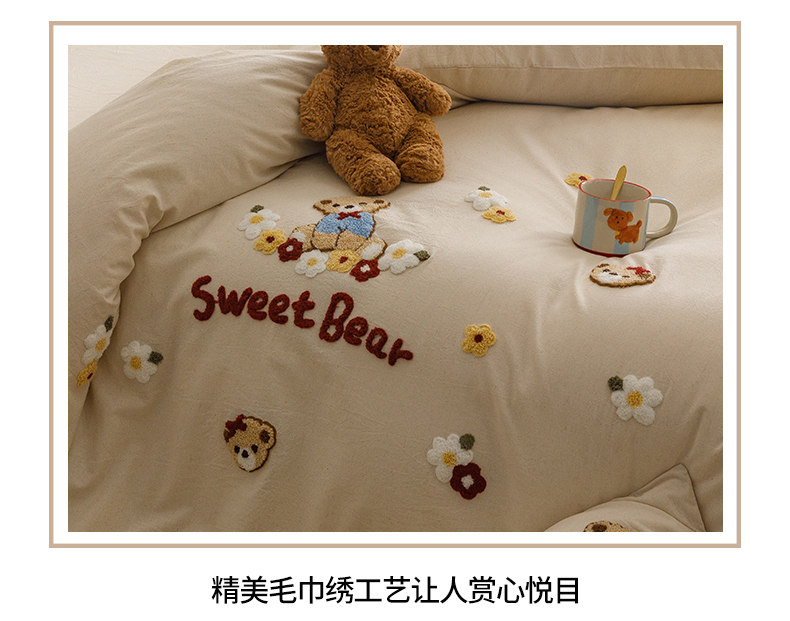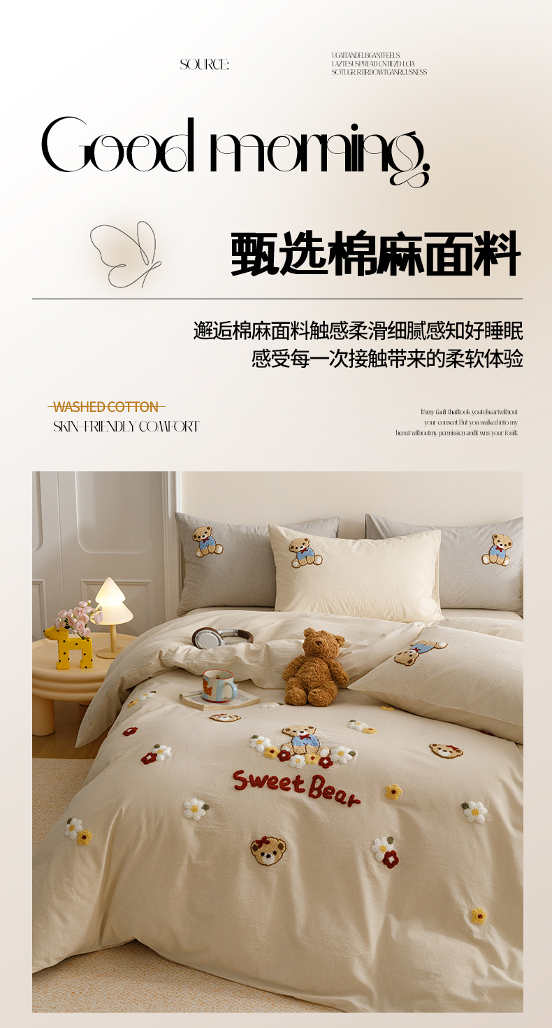 商品名称:艾莱家纺 2026春夏新款A类棉麻加厚四件套精艺刺绣精致毛巾绣四件套-冉初 冉初-本色