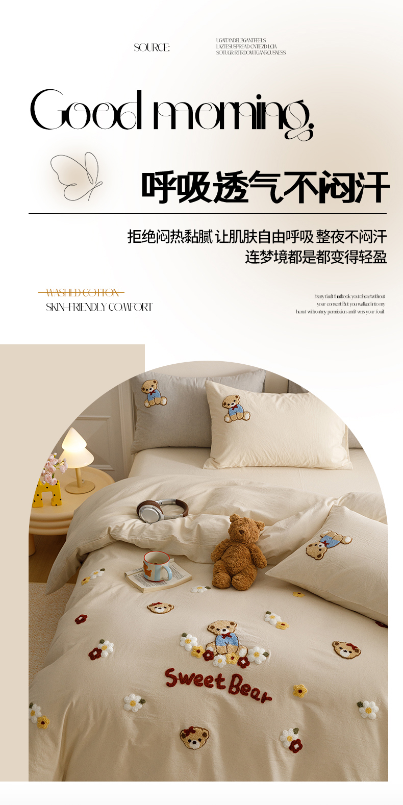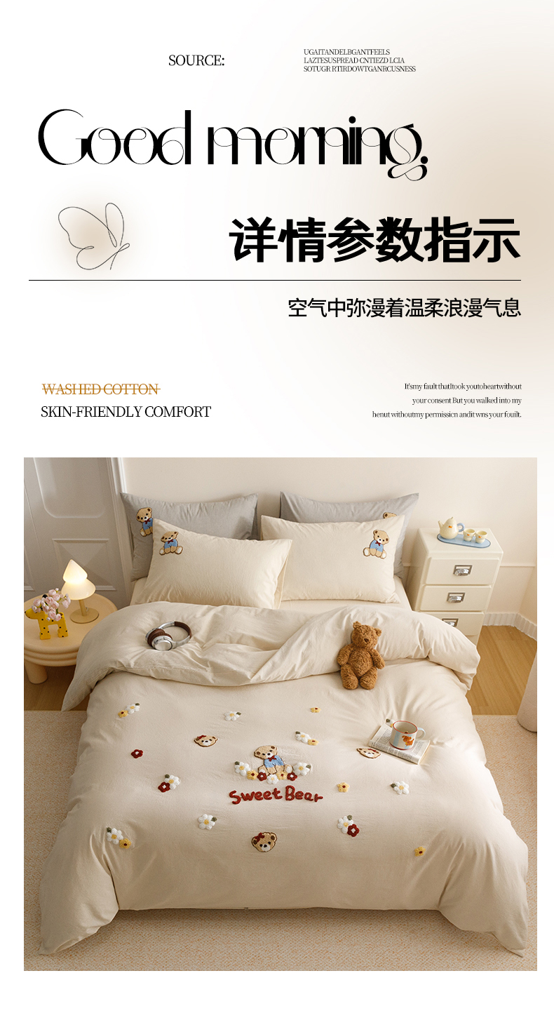 (总)艾莱家纺 2025新款A类水洗棉加厚绣花四件套-栀夏,栀夏-草莓奶粉,栀夏-格林棕,栀夏-暮光绿,栀夏-青叶紫,栀夏-银蓝