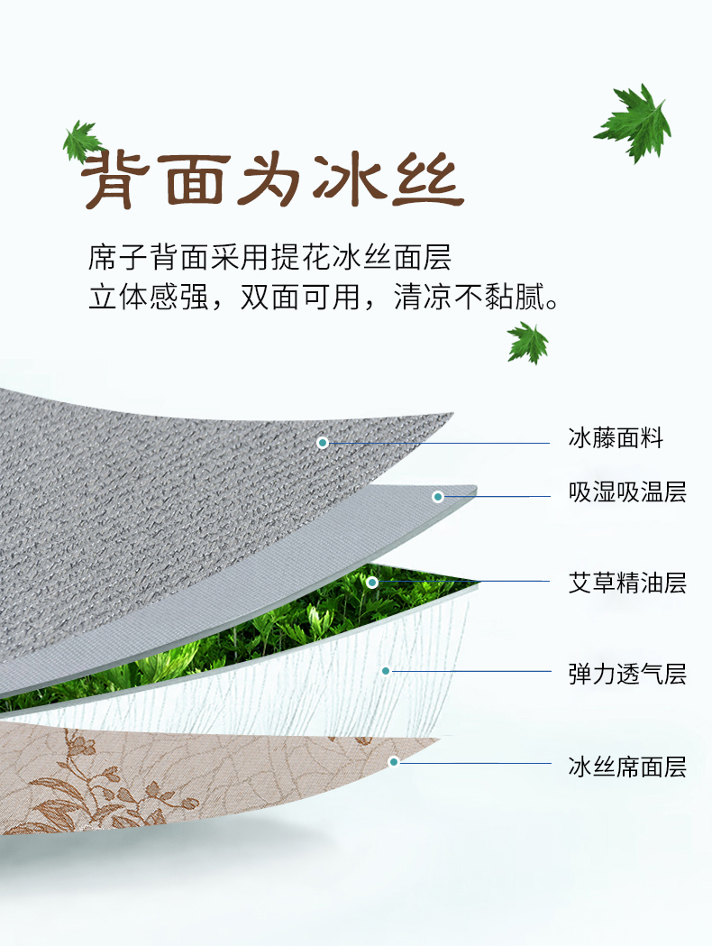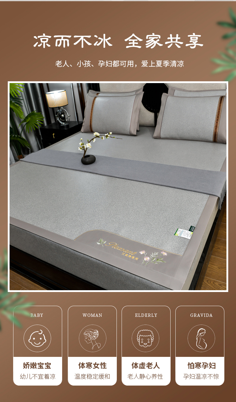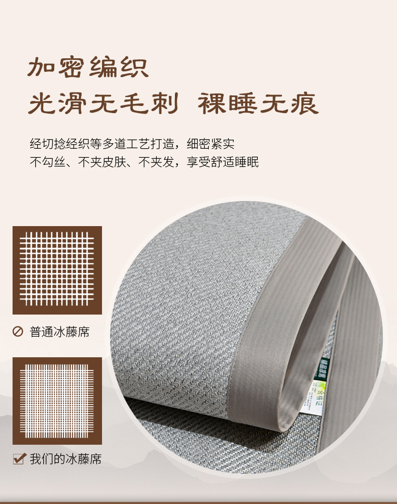 商品名称:小牛席业 2026新款艾草清香冰藤-双面席系列 艾草冰藤席-银灰