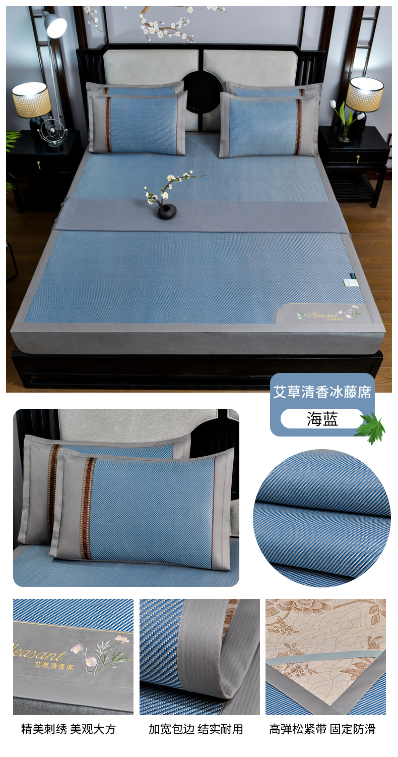 2023新款经典全藤席面艾草养生席冰藤席凉席冰丝席竹席乳胶席空调席,艾草席-冰蓝,艾草席-黑咖,艾草席-红棕,艾草席-黄藤,艾草席-灰色,艾草席-墨绿,艾草席-浅咖,艾草席-亚麻