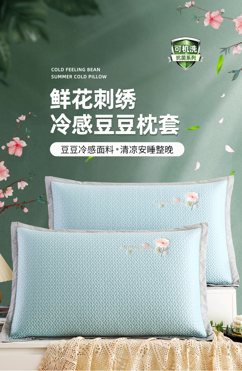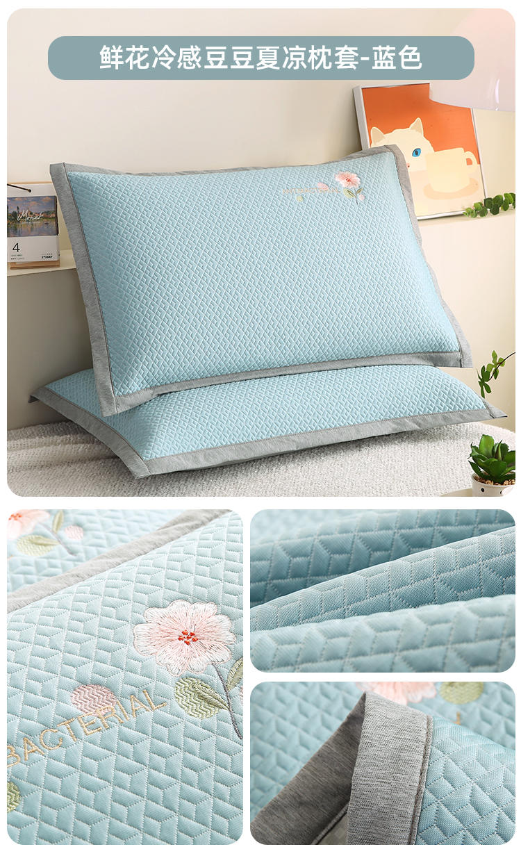(总)小牛席业 2026新款鲜花刺绣凉感冰丝枕套单枕套枕套单件,鲜花凉感冰丝枕套-粉色,鲜花凉感冰丝枕套-灰色,鲜花凉感冰丝枕套-蓝色,鲜花凉感冰丝枕套-绿色,组合图 仅供参考