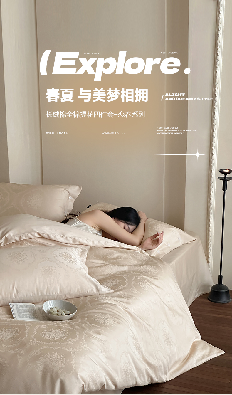 三味舒屋 2026新款长绒棉全棉提花四件套-恋春系列-场景一 恋春星光