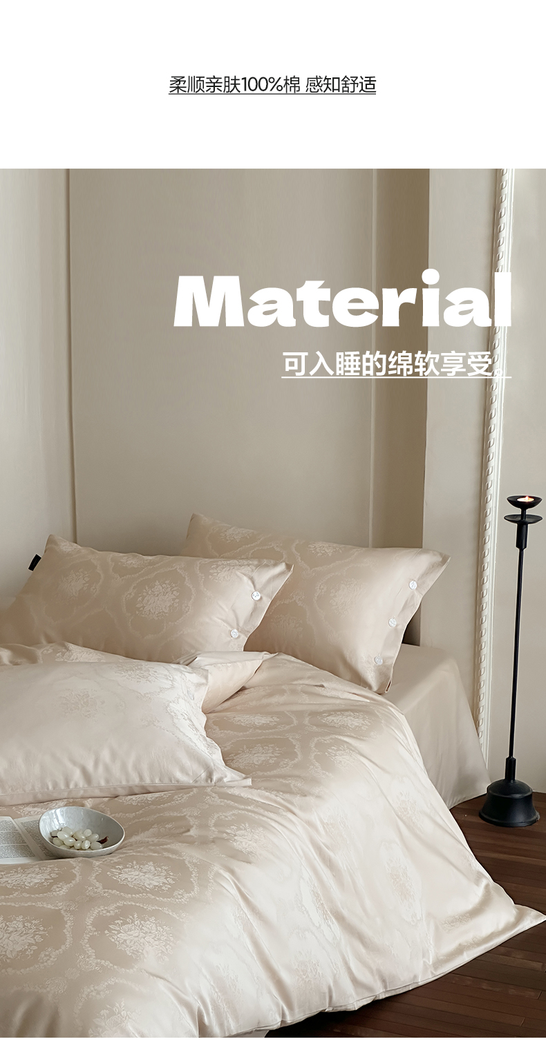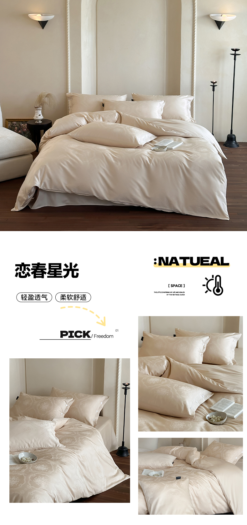商品名称:三味舒屋 2026新款长绒棉全棉提花四件套-恋春系列-场景一 恋春星光