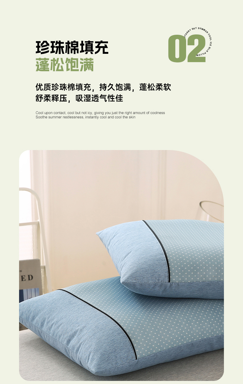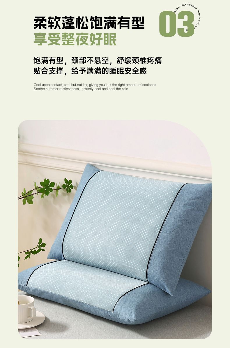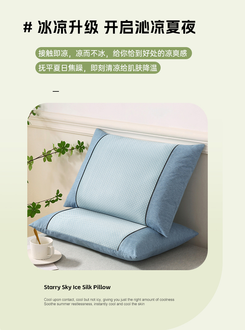 小牛席业 2026新款PE满天星凉感冰丝枕【夏凉枕】枕头枕芯 满天星冰丝夏凉枕-蓝色