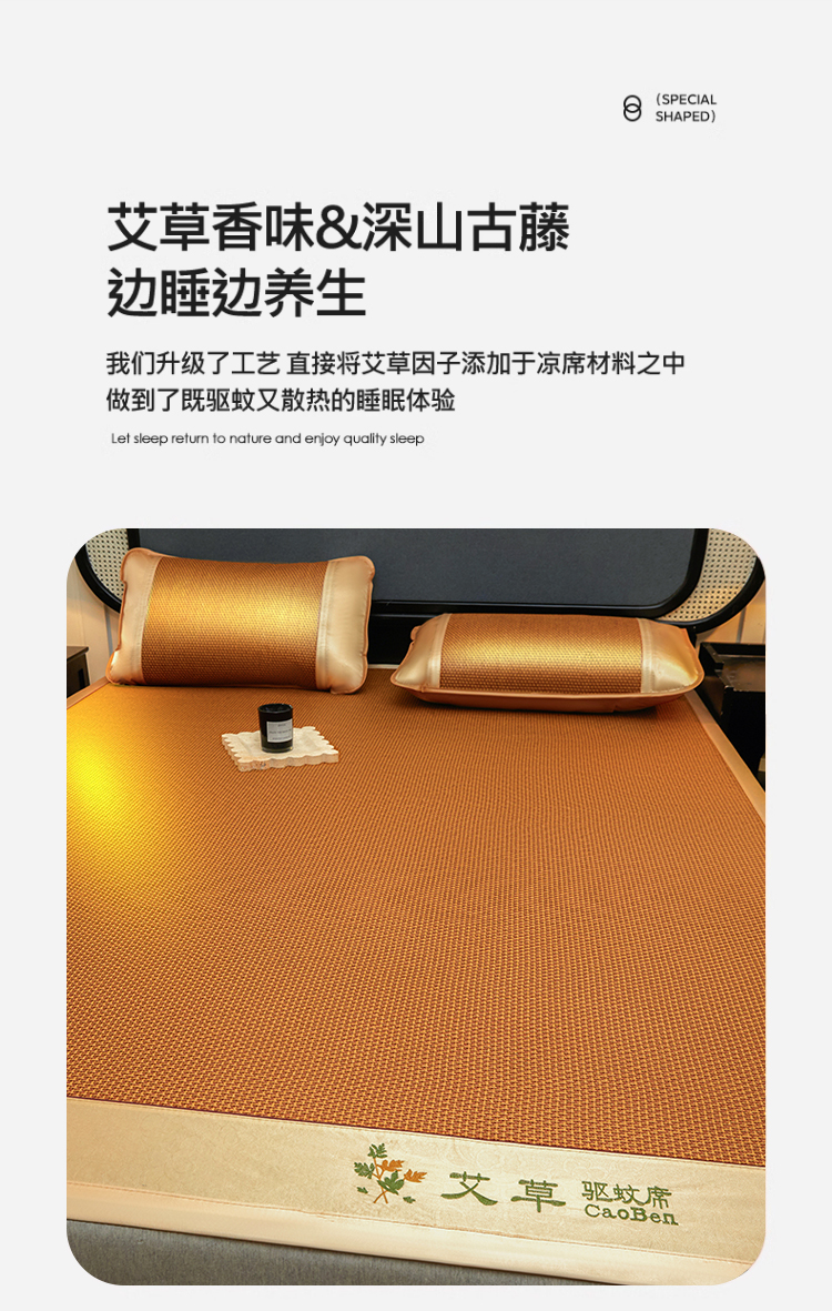 小桃姐家纺 2025新款舒适艾草刺绣藤席养身席单面席中国风凉席席子 艾草刺绣-水中花