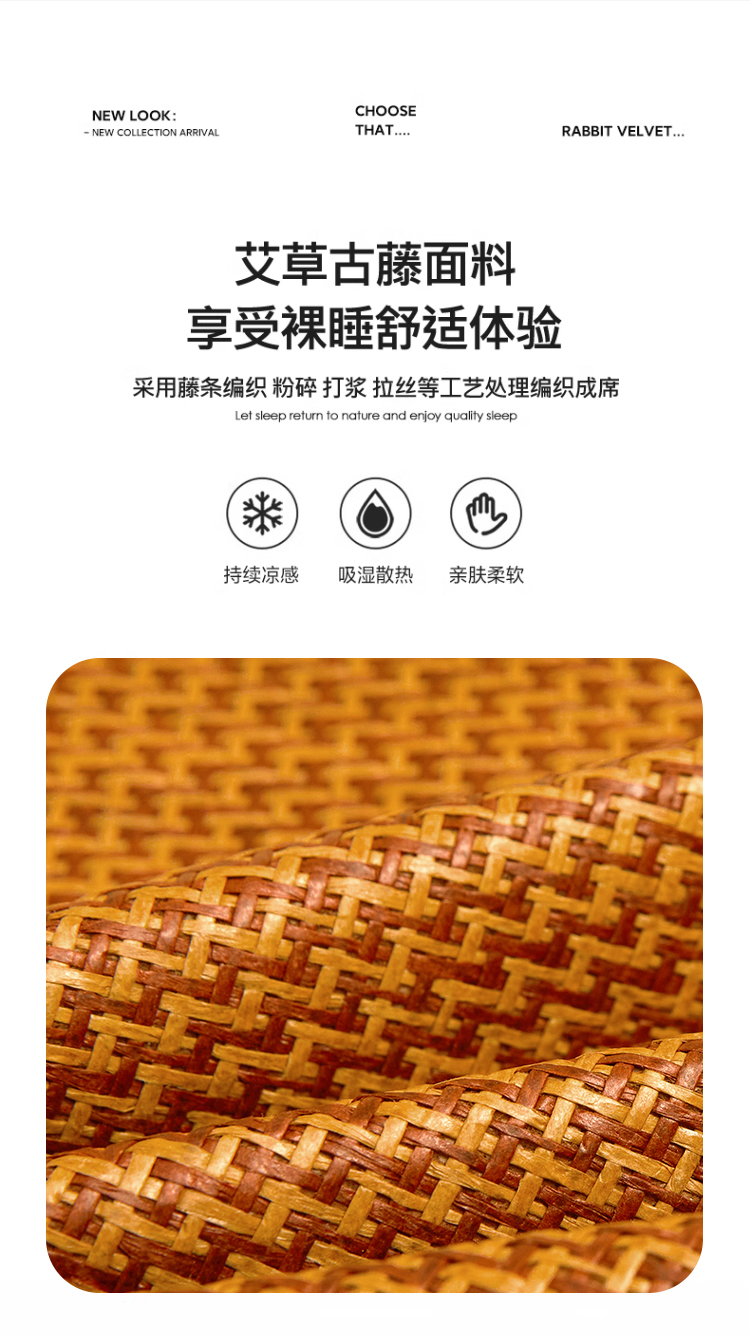 商品名称:小桃姐家纺 2025新款舒适艾草刺绣藤席养身席单面席中国风凉席席子 艾草刺绣-水中花