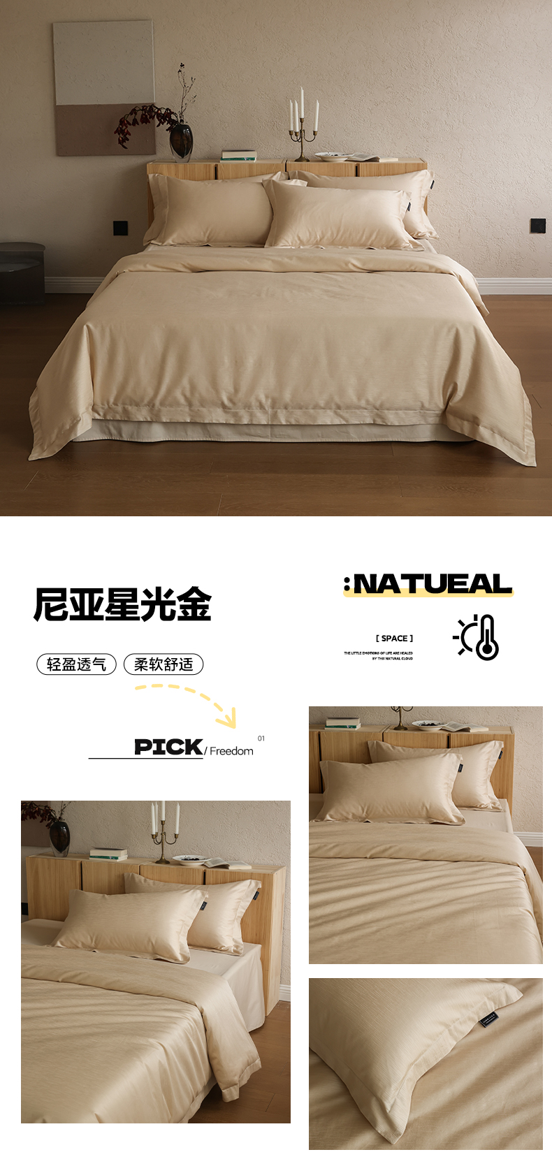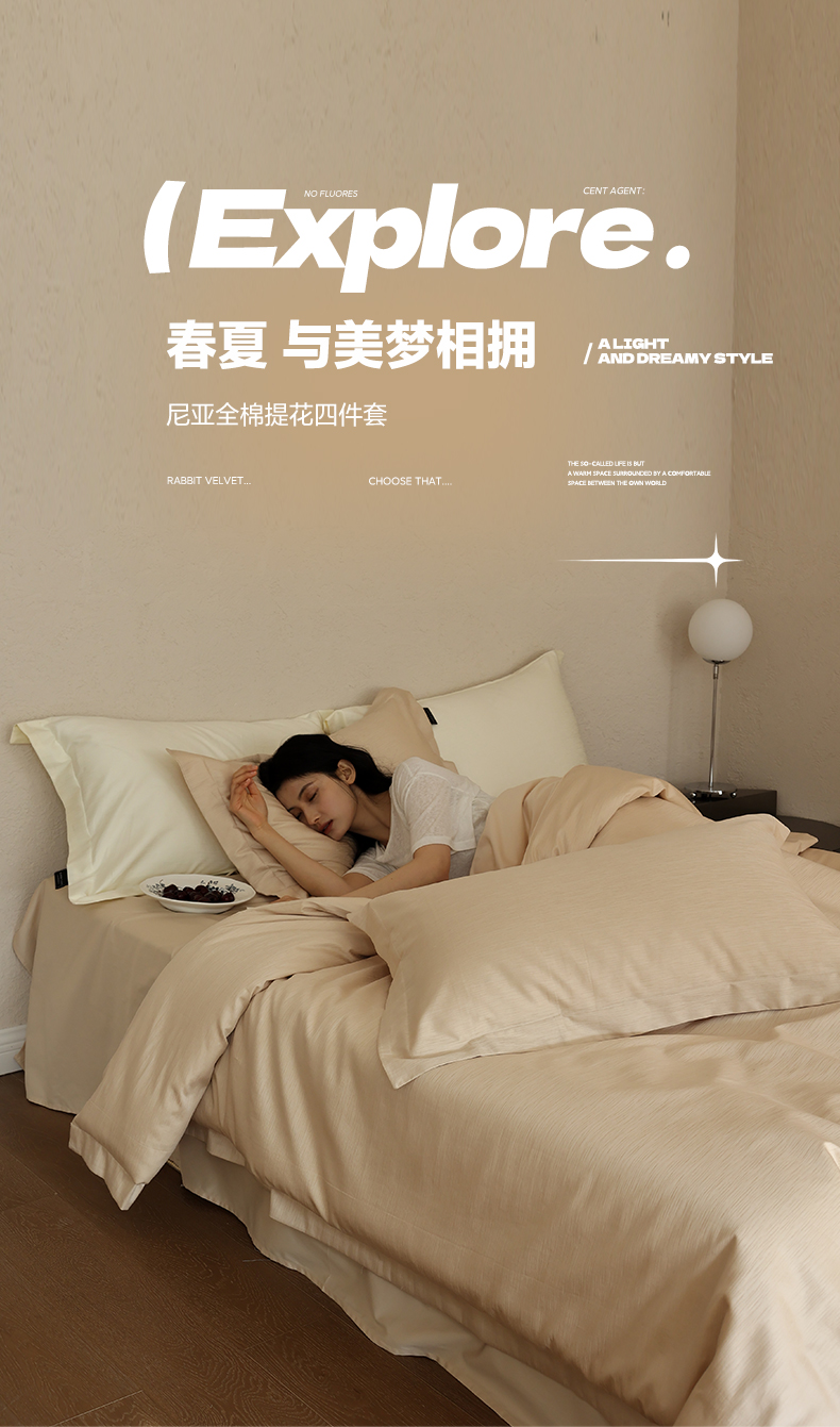 商品名称:三味舒屋 2026新款长绒棉全棉提花四件套-尼亚系列 尼亚星光金