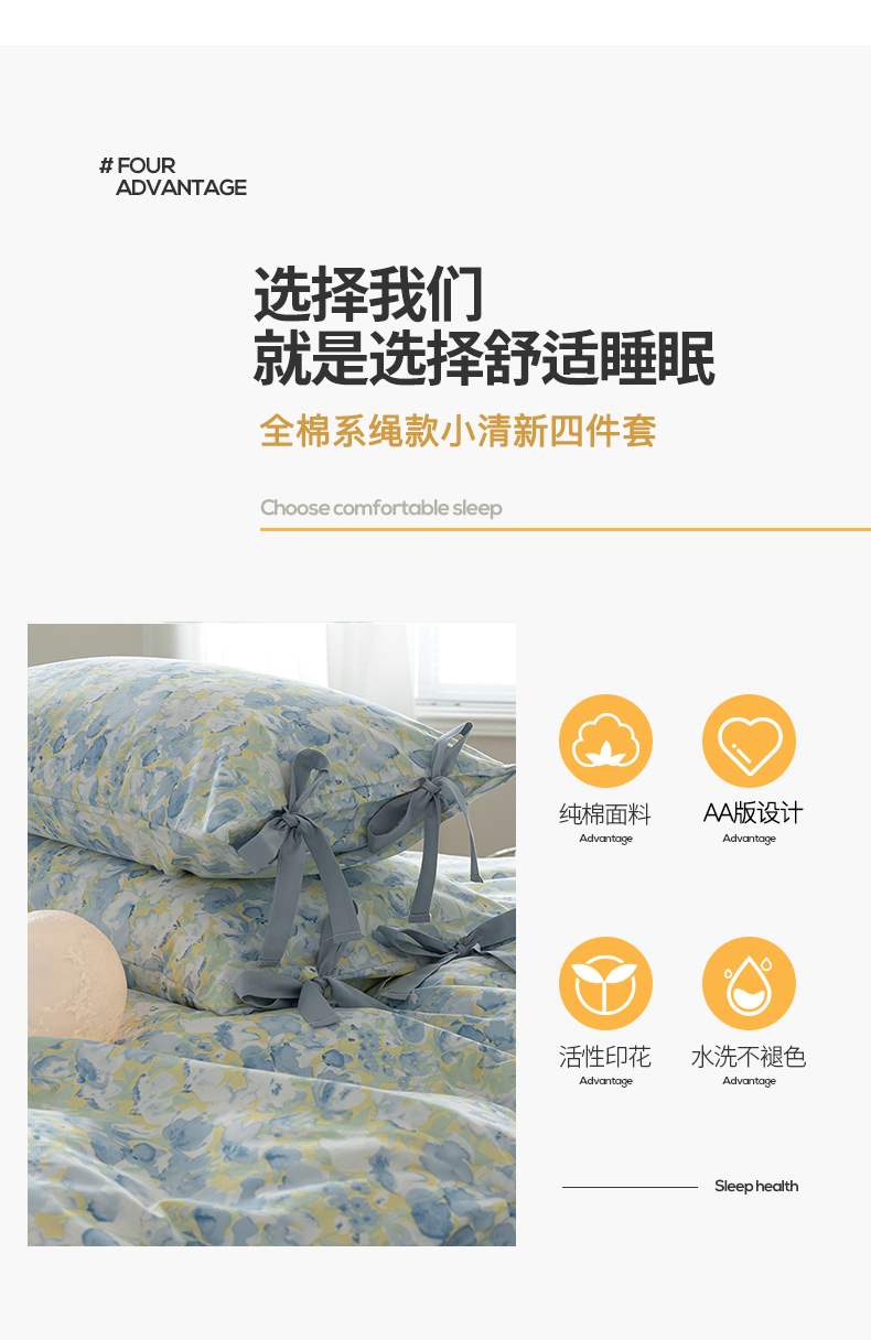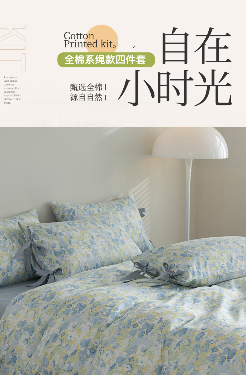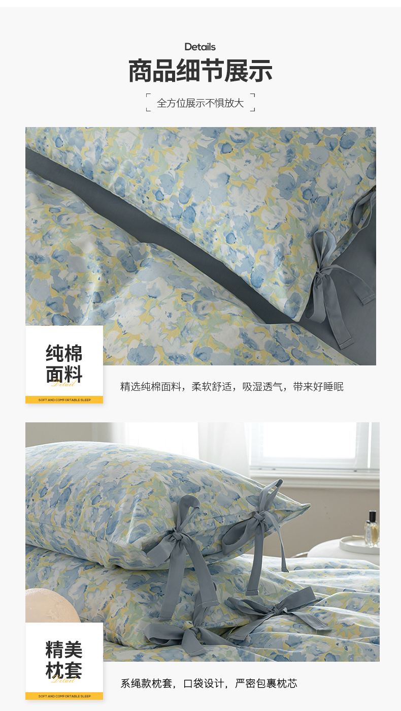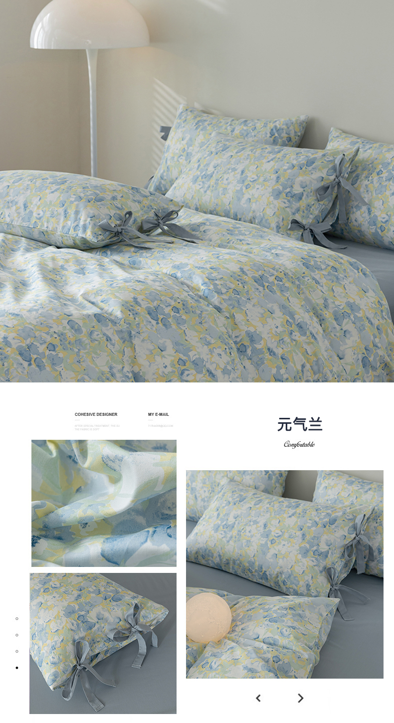 当前位置: 91家纺网 > 商品网购 > 床品套件 > 四件套 > 全棉普通四件套 > 绫韵家纺 2026新款13372全棉ins小碎花纯棉田园风床单床笠四件套系绳蝴蝶结系列二 元气兰