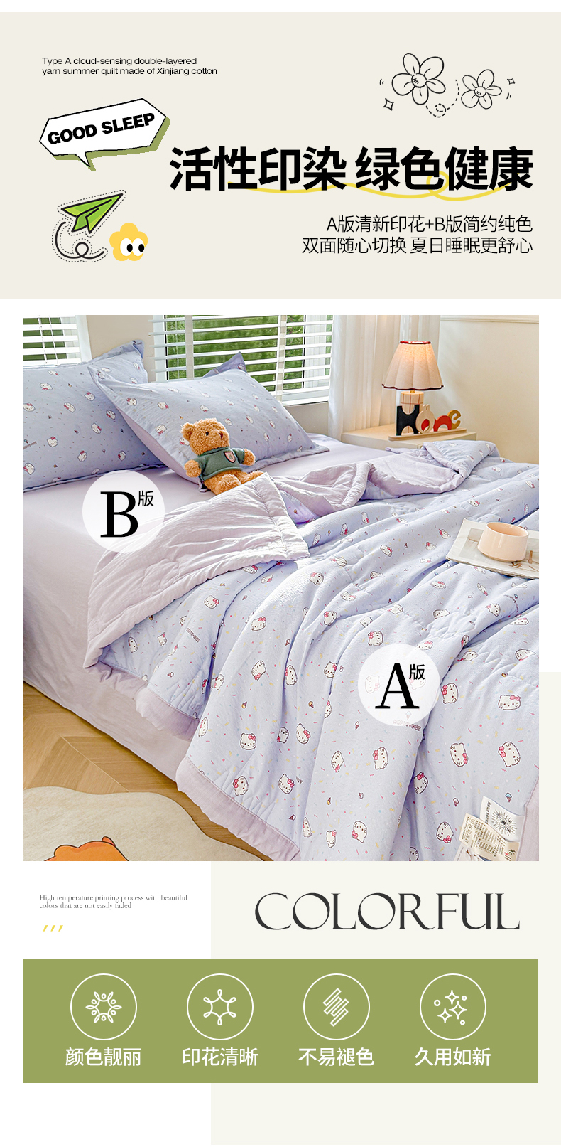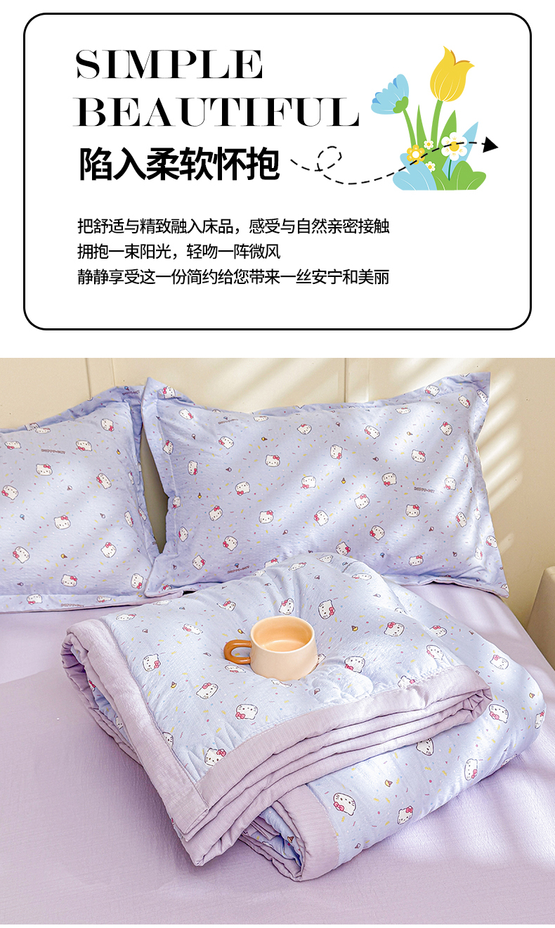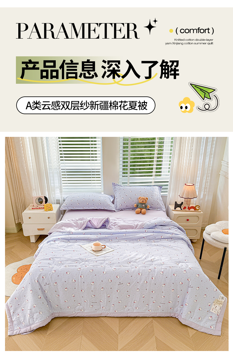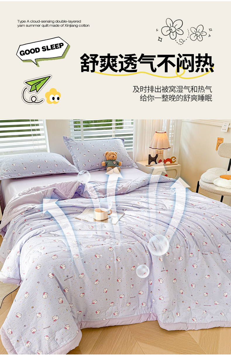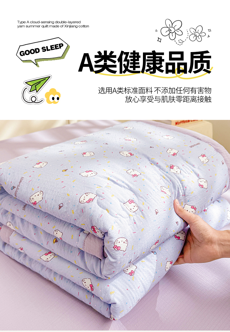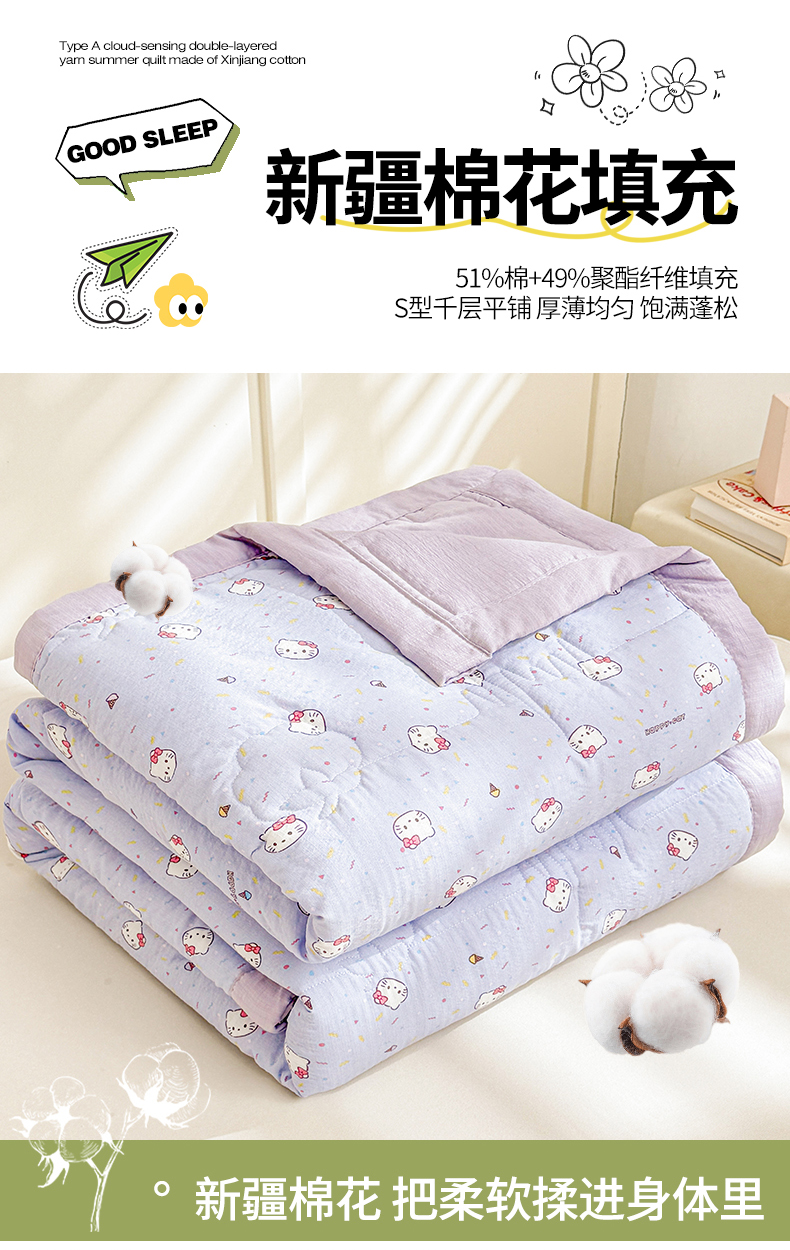 商品名称:2026新款A类新疆棉花夏凉被加宽包边水洗棉卡通印花吸湿透气棉花夏被空调被 云感瑞拉