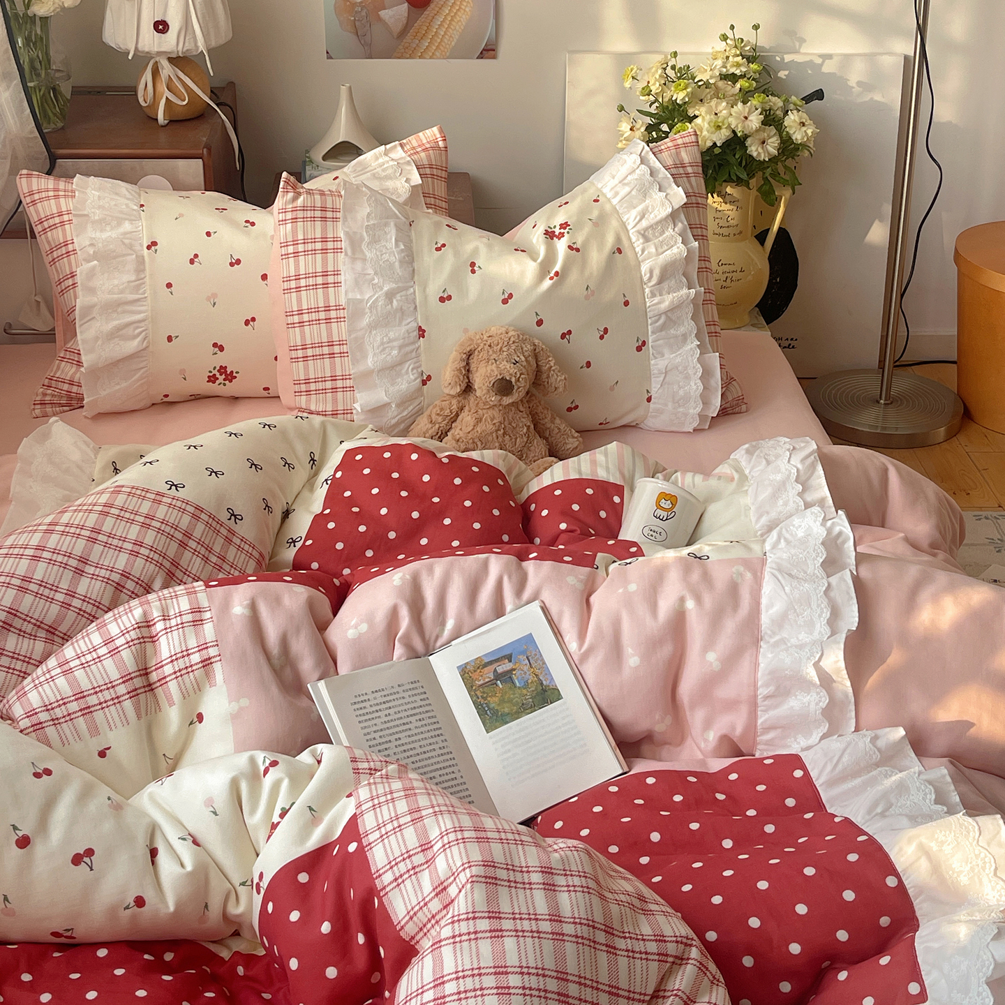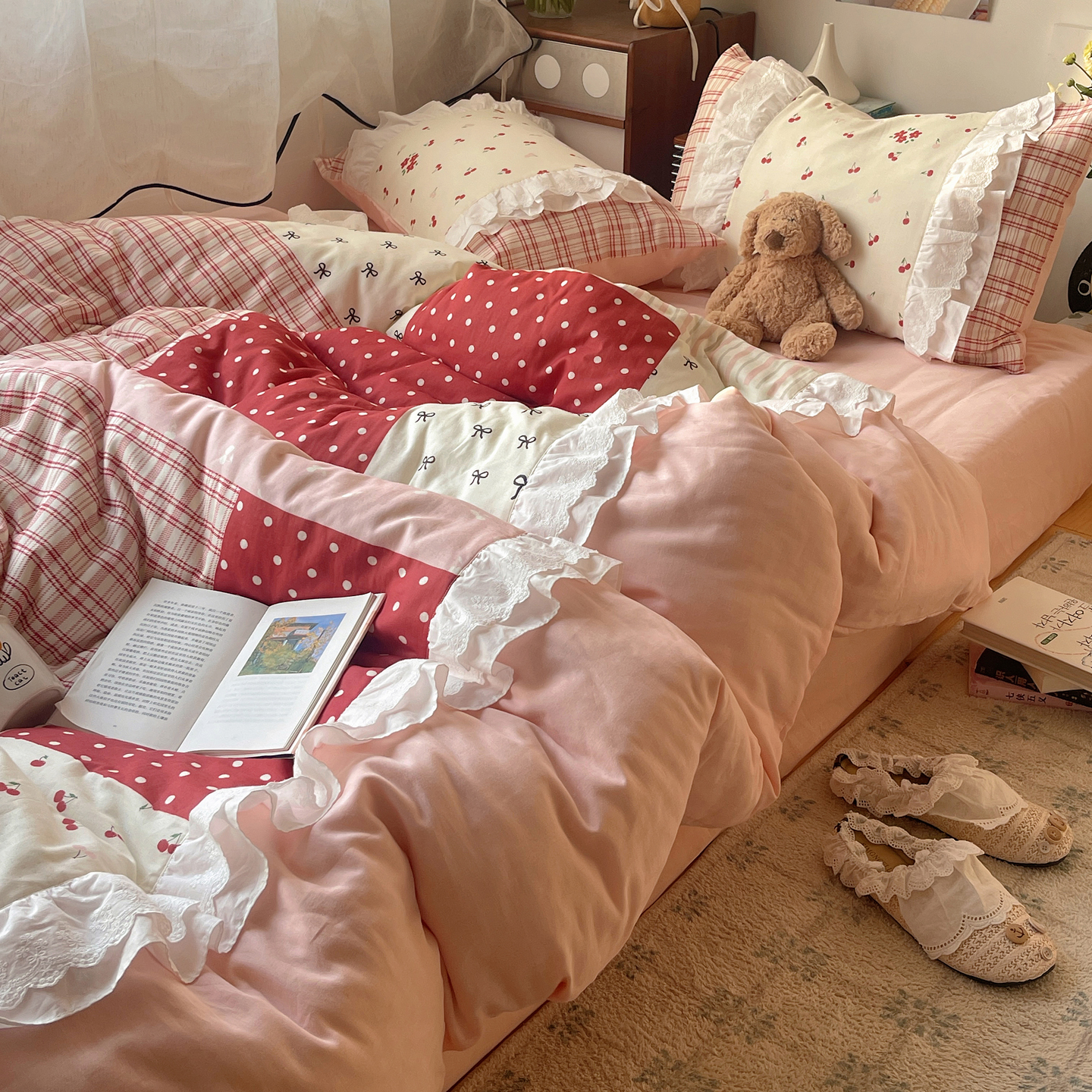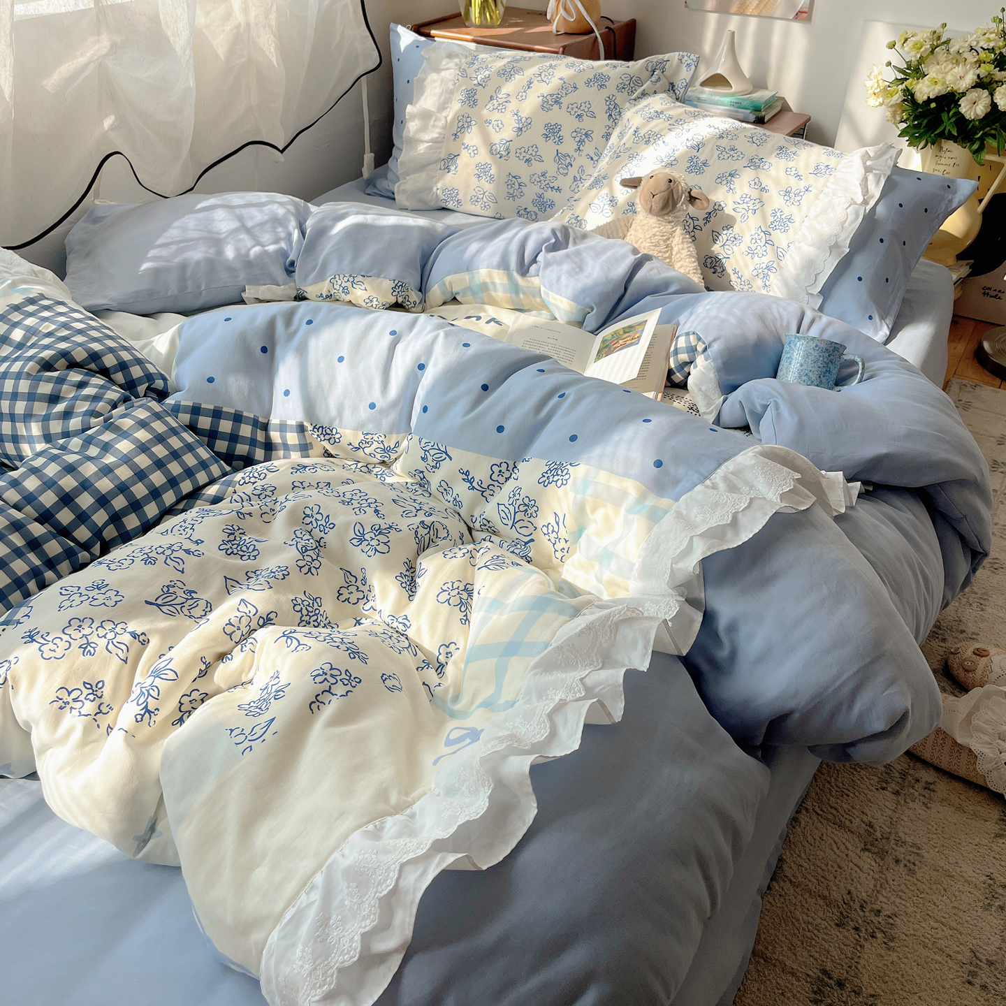当前位置: 91家纺网 > 商品网购 > 床品套件 > 四件套 > 全棉普通四件套 > 觅糖家纺 2026新款全棉纯棉双层纱梦幻花边系列四件套(会员-5) 甜心雾语