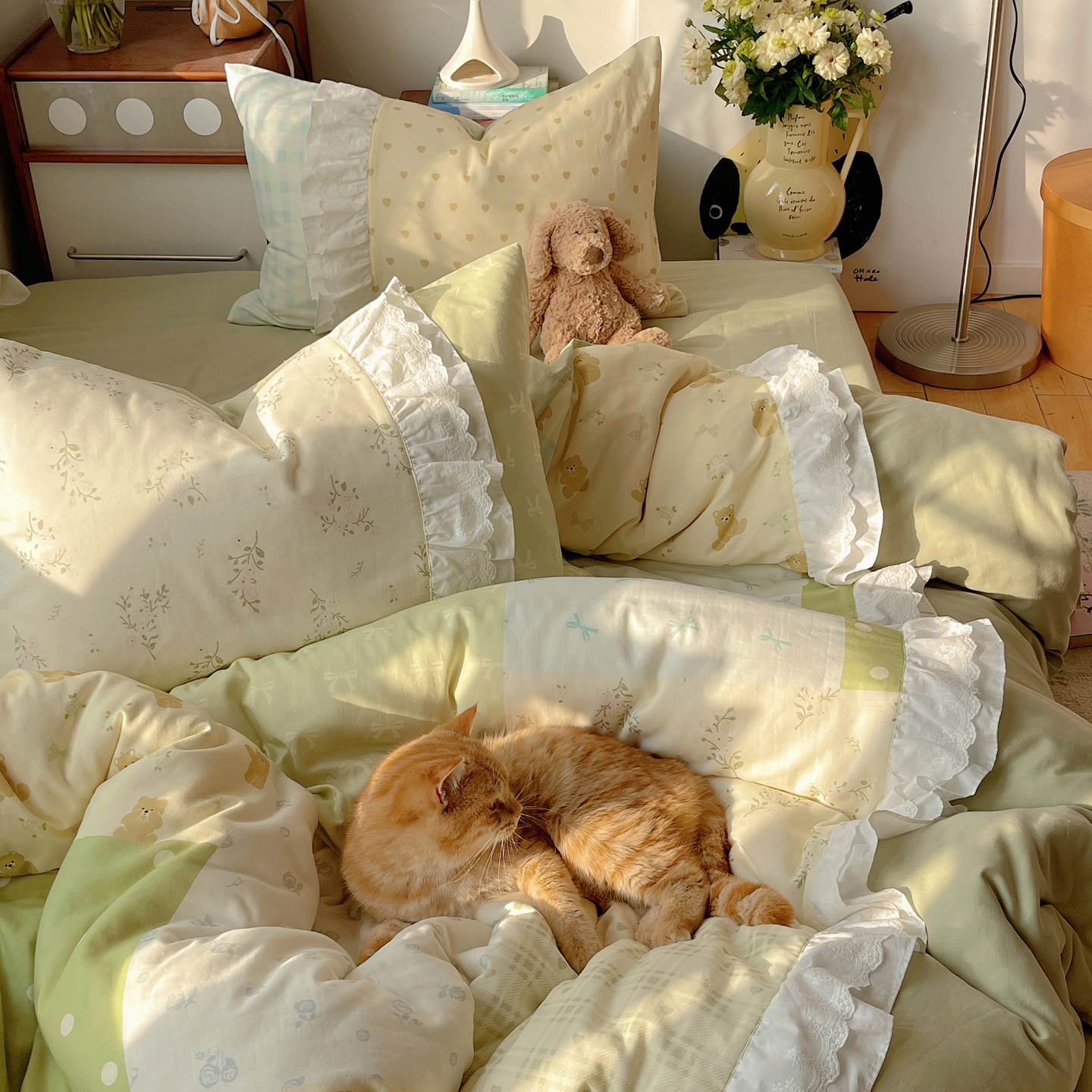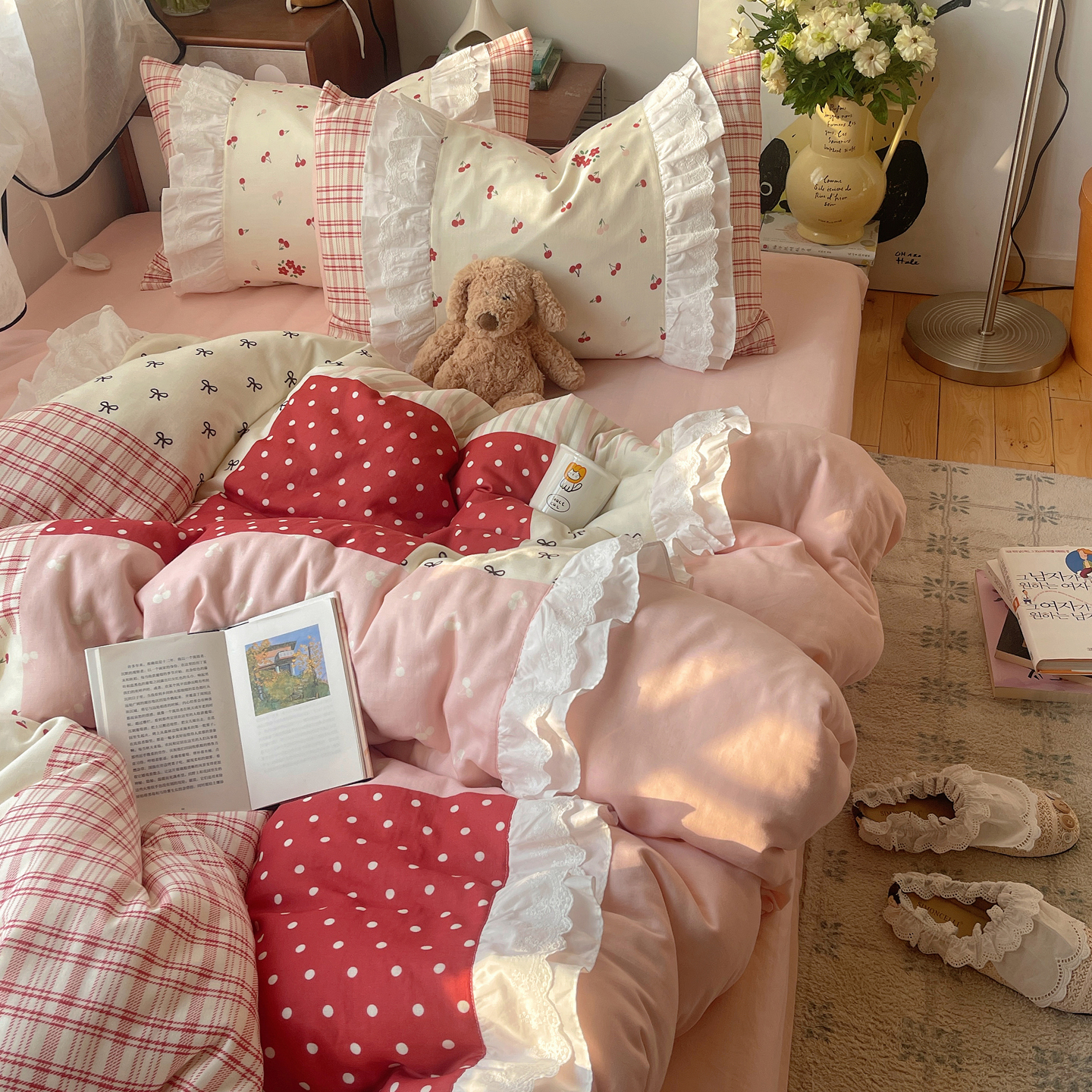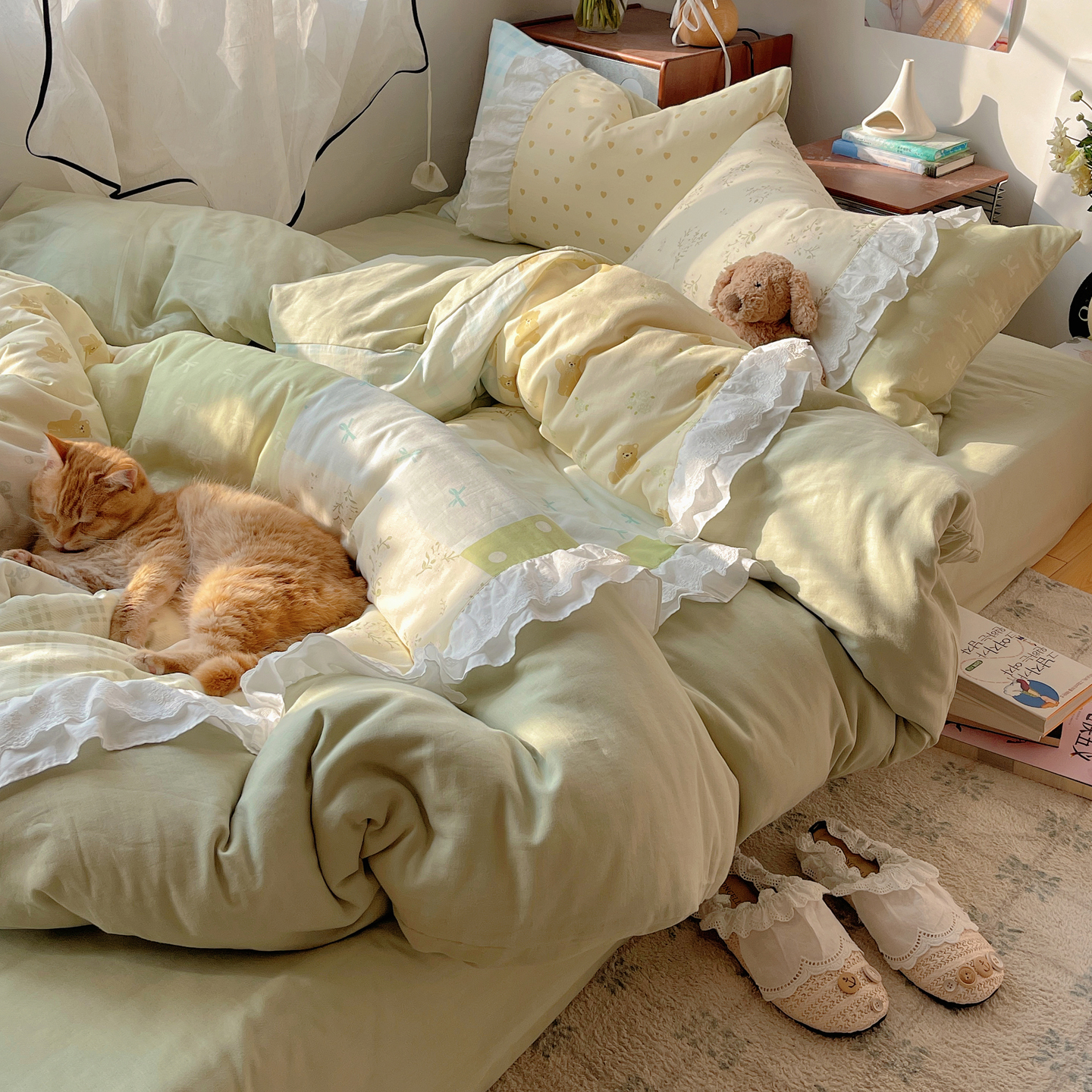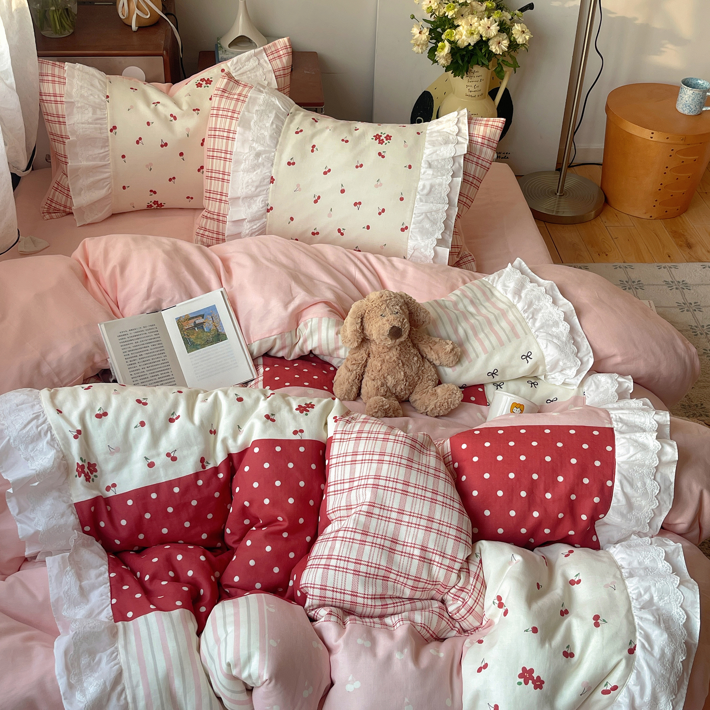 当前位置: 91家纺网 > 商品网购 > 床品套件 > 四件套 > 全棉普通四件套 > 觅糖家纺 2026新款全棉纯棉双层纱梦幻花边系列四件套(会员-5) 甜心雾语