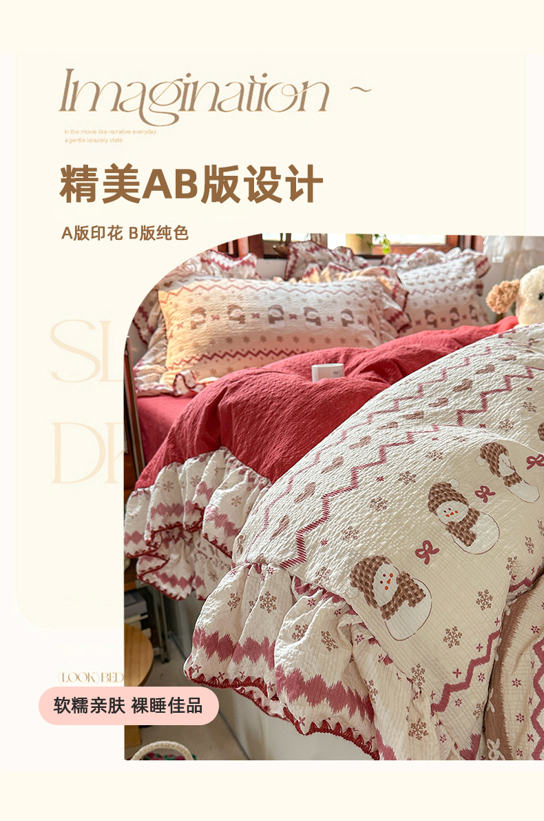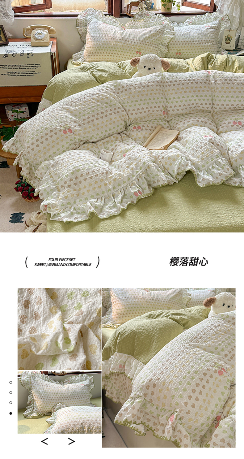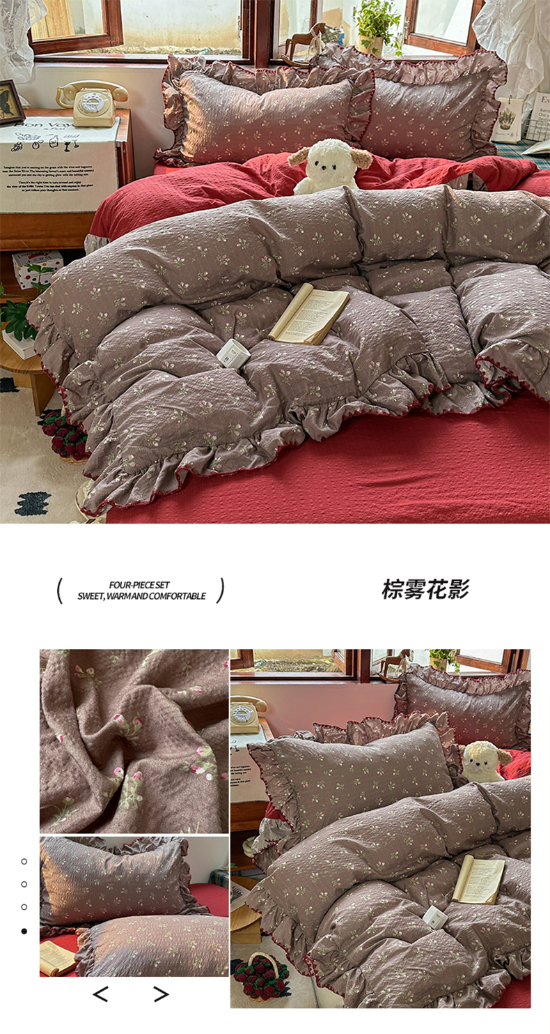 当前位置: 91家纺网 > 商品网购 > 床品套件 > 四件套 > 其它四件套 > 梵克保罗 2026新款泡芙棉三角针被壳绣花边四件套 绿野寻踪