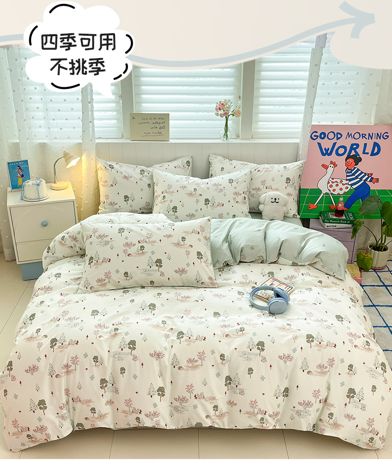 当前位置: 91家纺网 > 商品网购 > 床品套件 > 四件套 > 全棉普通四件套 > 晨希家居 2026春夏新款全棉纯棉小清新多规格四件套 松果梦