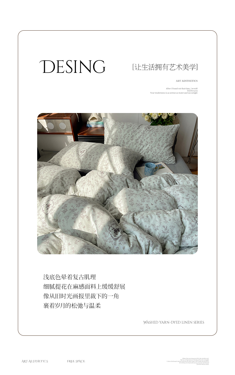 当前位置: 91家纺网 > 商品网购 > 床品套件 > 四件套 > 其它四件套 > 凯洛奇 2026新款色织麻水洗提花四件套-提供买家秀 杏青花谣