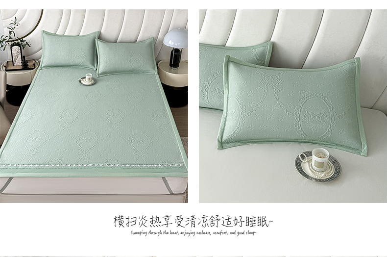 (总)梦卡迪 2026新款A类提花凉感冰凉豆豆凉席镂空花边床笠床单可机洗双人软席子三件套,冰蓝色-凉席,抹茶绿-凉席,浅粉色-凉席,浅灰色-凉席,浅米色-凉席,浅紫色-凉席,冰蓝色-床笠,抹茶绿-床笠,浅粉色-床笠,浅灰色-床笠,浅米色-床笠,浅紫色-床笠