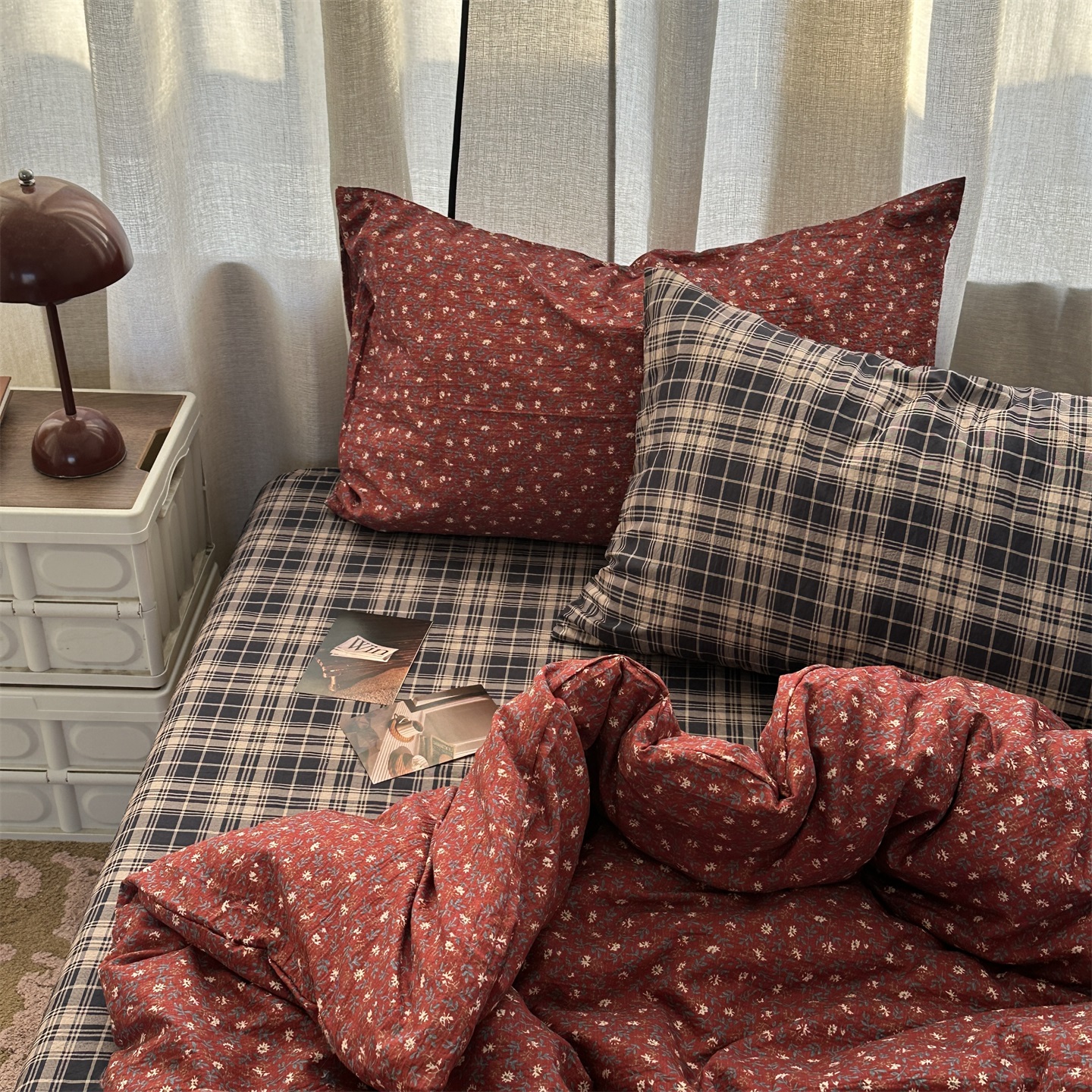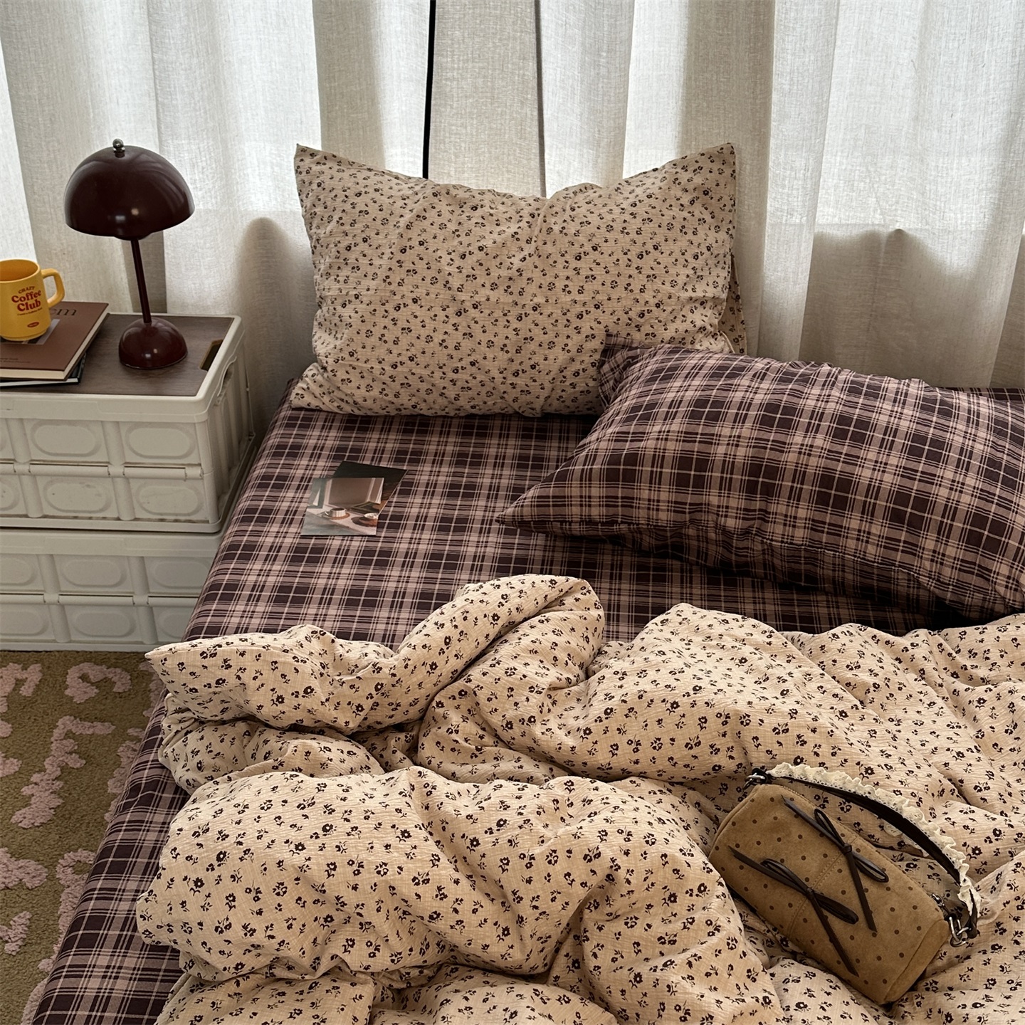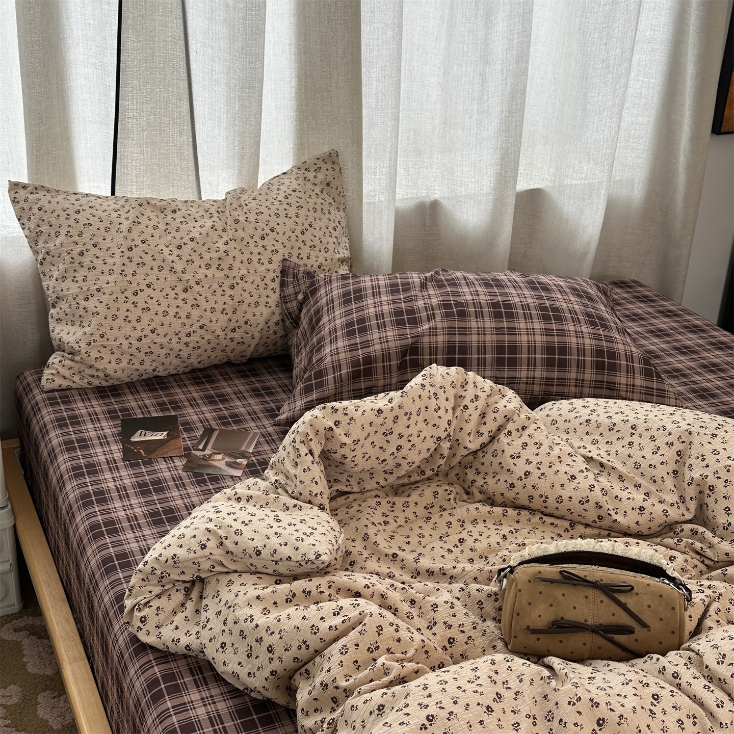 当前位置: 91家纺网 > 商品网购 > 床品套件 > 四件套 > 水洗棉四件套 > 拾一 2026新款日韩复古混搭风田园小碎花水洗棉木棉四件套 米白花簇