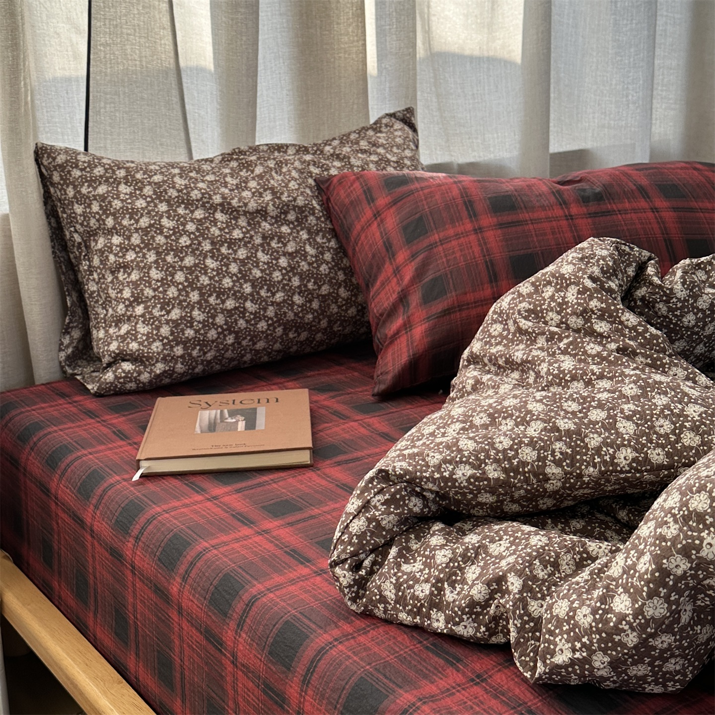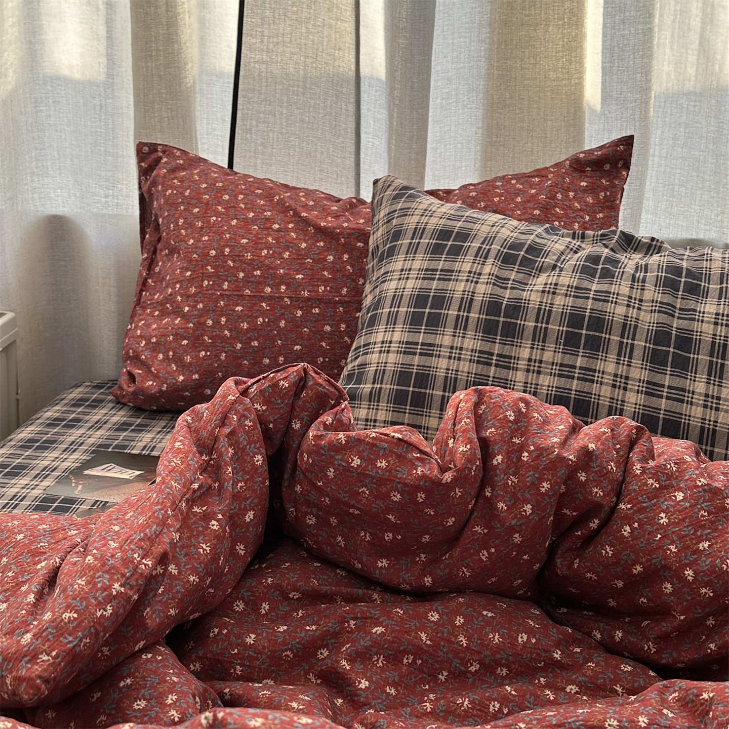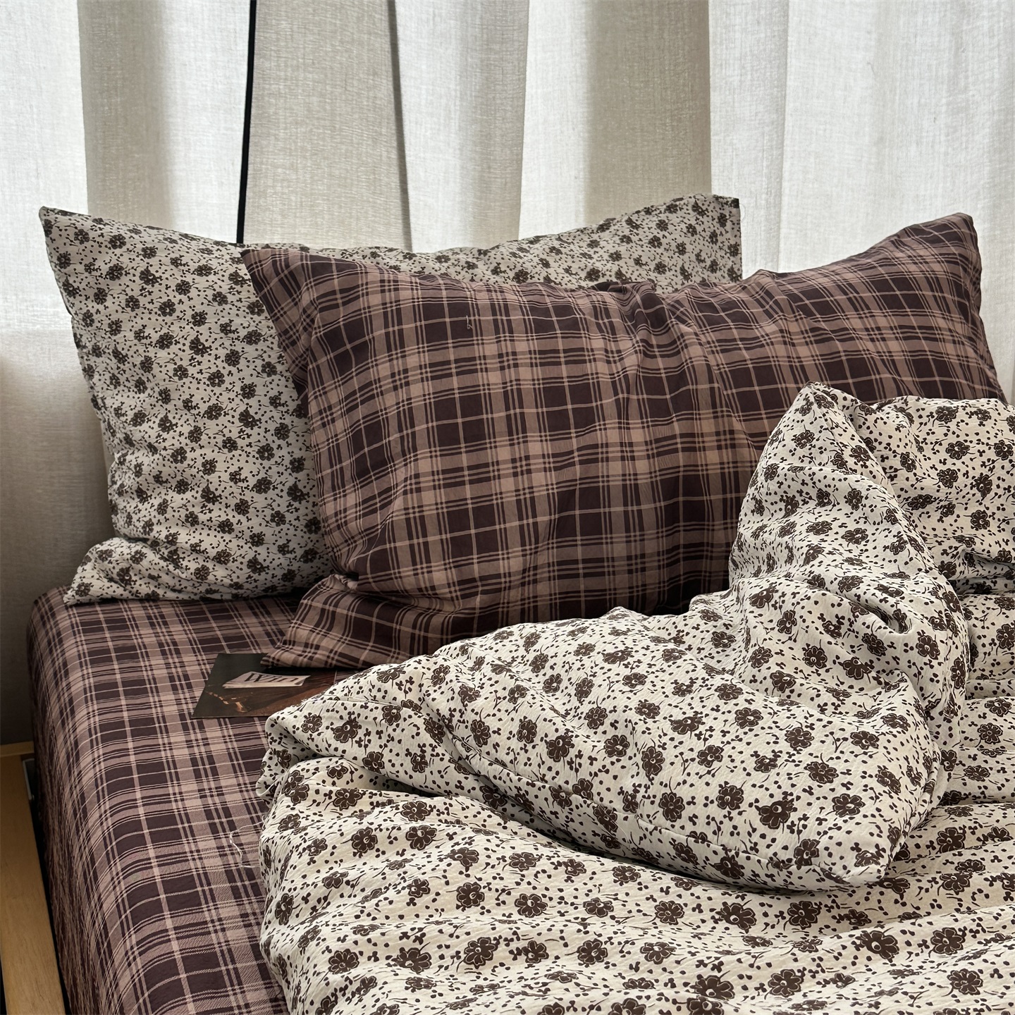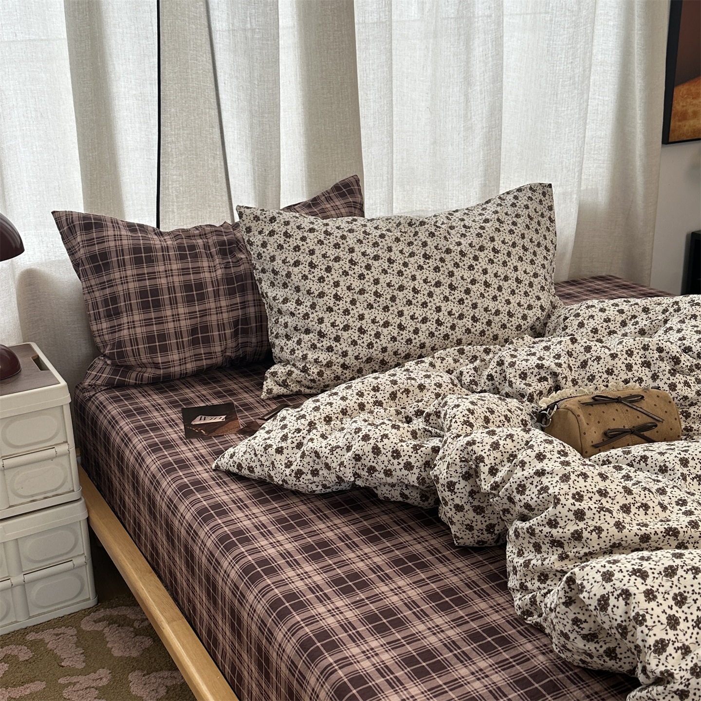 当前位置: 91家纺网 > 商品网购 > 床品套件 > 四件套 > 水洗棉四件套 > 拾一 2026新款日韩复古混搭风田园小碎花水洗棉木棉四件套 米白花簇