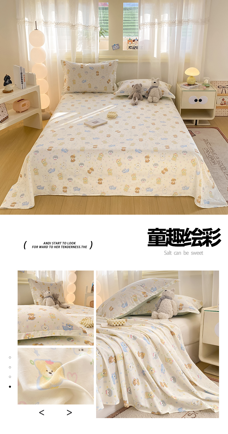 • 91家纺网 家纺一手货源 找家纺 女子家纺 2026新款全棉印花小清新系列-单床单 碎花兔熊