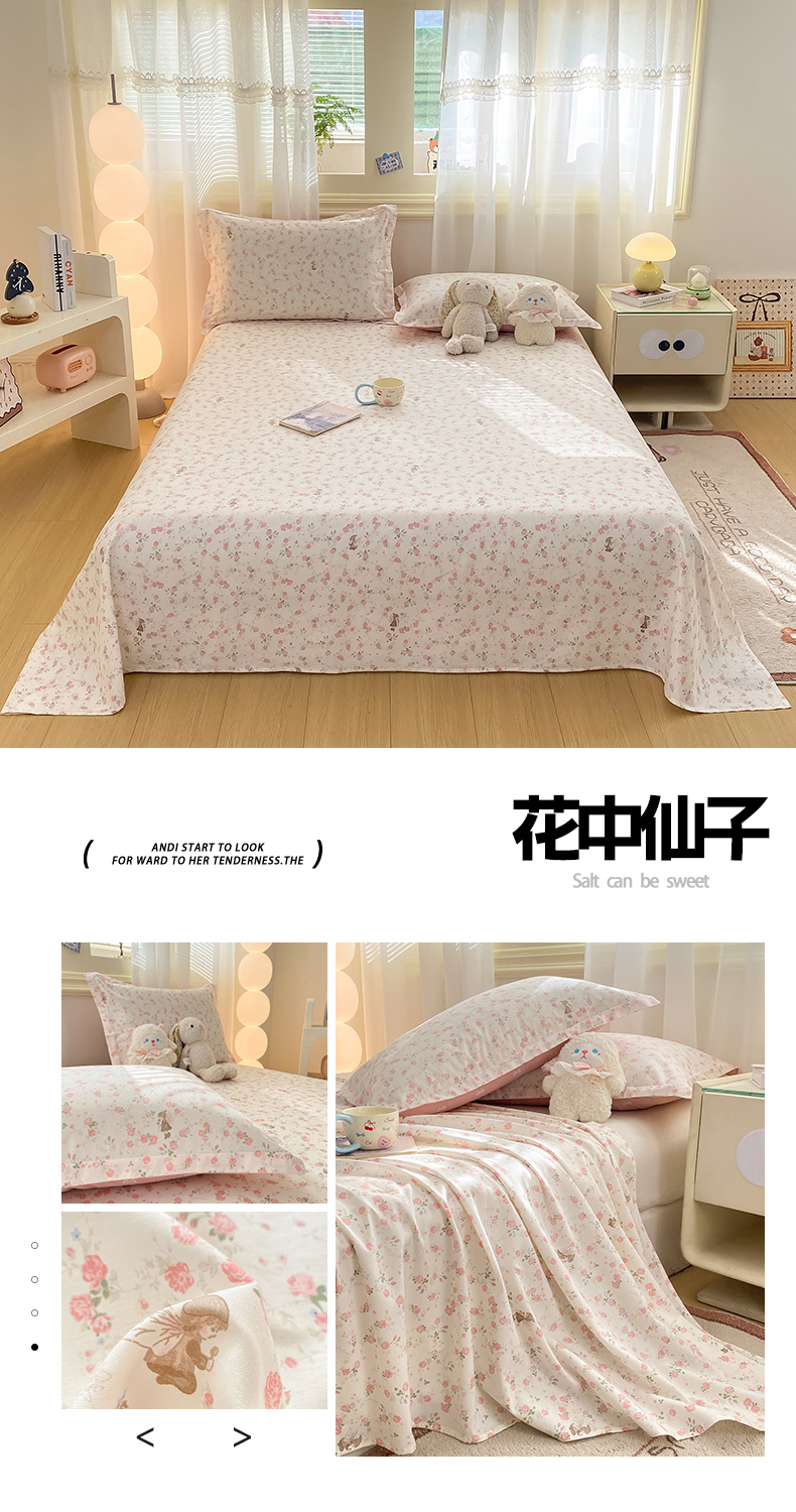 • 91家纺网 家纺一手货源 找家纺 女子家纺 2026新款全棉印花小清新系列-单床单 悦下花影
